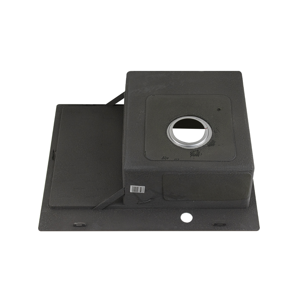 Мойка врезная 50х50 см, ЧЁРНОЕ СТЕКЛО + нержавеющая сталь, толщина стекла 8 мм, глубина 200 мм + большой КВАДРАТНЫЙ сифон с переливом + корзина