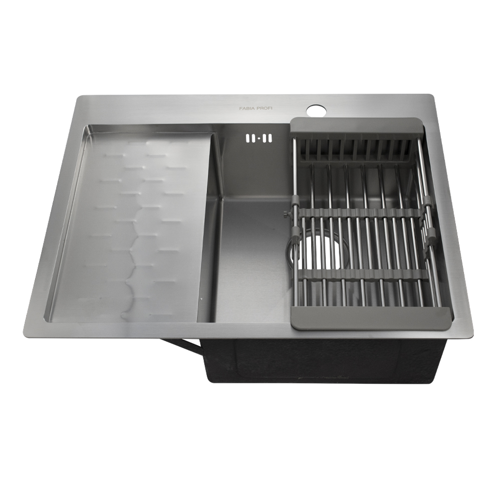 Мойка врезная 63х50 см, ПРАВАЯ, толщина 3,0 х 0,8 мм, глубина 200 мм + большой сифон с переливом