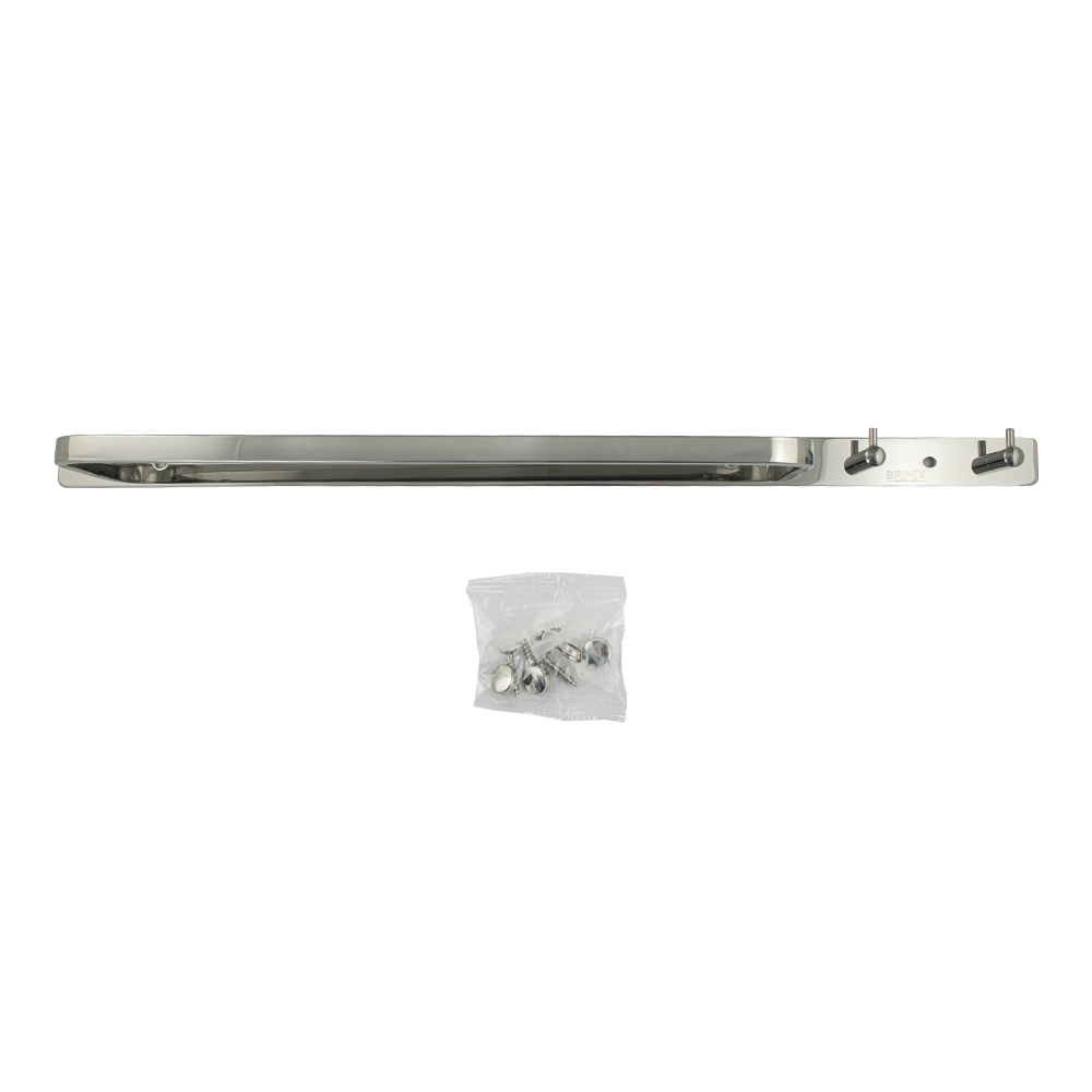 Держатель для полотенец из полированной нержавеющей стали с двумя крючками, цвет хром, прямой. Полированная поверхность очень стойко переносит истирания и обеспечивает долгий срок службы изделия. На держателе с легкостью можно размещать любые полотенца для сушки. Идеально подойдет не только для ванной, но и для кухни, а также для дачи или гаража - при необходимости на держатель можно вешать любые предметы. Изделие крепится к стене с помощью дюбелей и саморезов (входят в комплект). Габаритные размеры: длина 590 мм, глубина 80 мм, высота 28 мм. Вес - 0.51 кг, объём - 0.00193 м3.