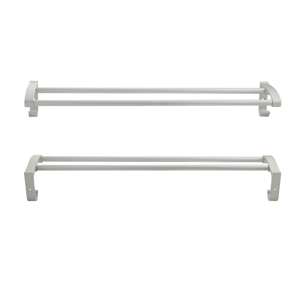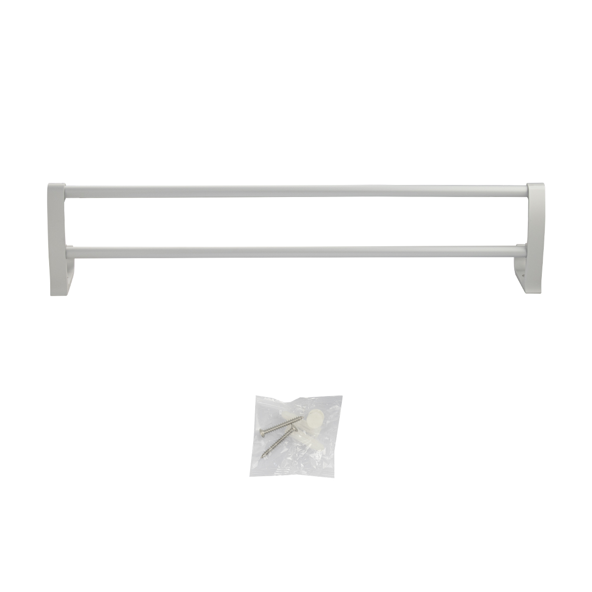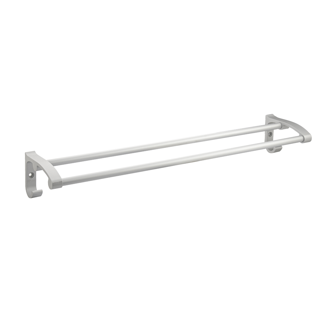 Держатель для полотенец алюминиевый с двумя перекладинами, прямой с крючками. Матовое покрытие очень стойко переносит истирания и обеспечивает долгий срок службы изделия. На держателе с легкостью можно размещать любые полотенца для сушки. Идеально подойдет не только для ванной, но и для кухни, а также для дачи или гаража - при необходимости на держатель можно вешать любые предметы. Изделие крепится к стене с помощью дюбелей и саморезов (входят в комплект). Габаритные размеры: длина 586 мм, глубина 130 мм, высота 85 мм. Вес - 0.9 кг, объём - 0.009 м3.