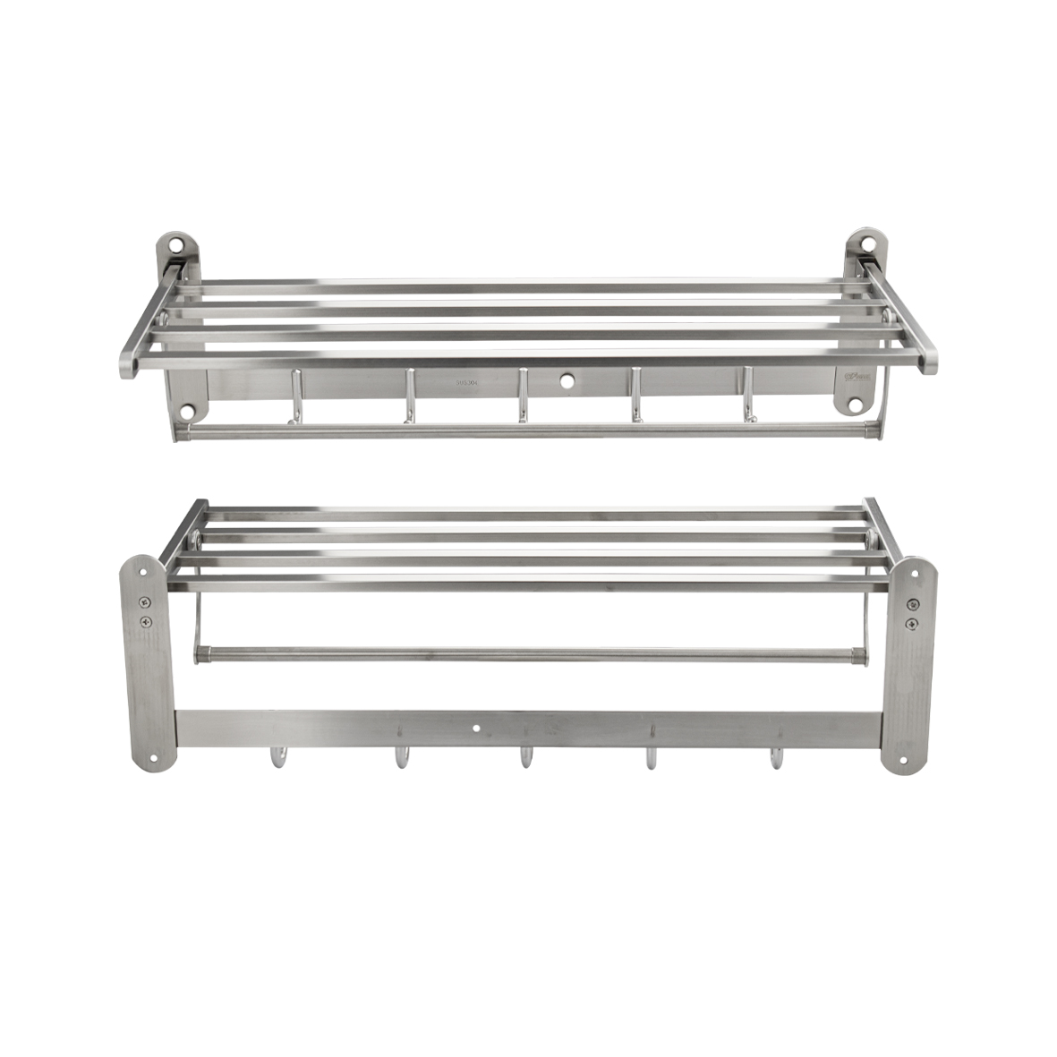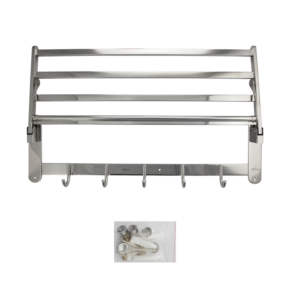 Полка для полотенца с опорой большая, для ванной, привлекает своим современным дизайном, многофункциональностью и надежностью конструкции. Откидывающаяся на 90° верхняя часть полки в ванную комнату позволяет размещать её даже в самых тесных помещениях. Кухня, ванная, прихожая, кладовка или гардеробная - эта полка идеально подойдет везде. Металлическая полка оснащена дополнительной перекладиной и крючками. Безупречно отшлифованная нержавеющая сталь делает её устойчивой к влаге и исключает появление ржавчины. Полка для ванной функциональное и практичное решение для любого интерьера. Материал изготовления — нержавеющая сталь 304. Матовое покрытие очень стойко переносит истирания . Идеально подойдет не только для ванной, но и для кухни. Изделие крепится к стене с помощью дюбелей и саморезов (входят в комплект). Габаритные размеры: ширина 600 мм, высота 170 мм, глубина 240 мм. Вес - 1.65 кг, объём - 0.0175 м3.