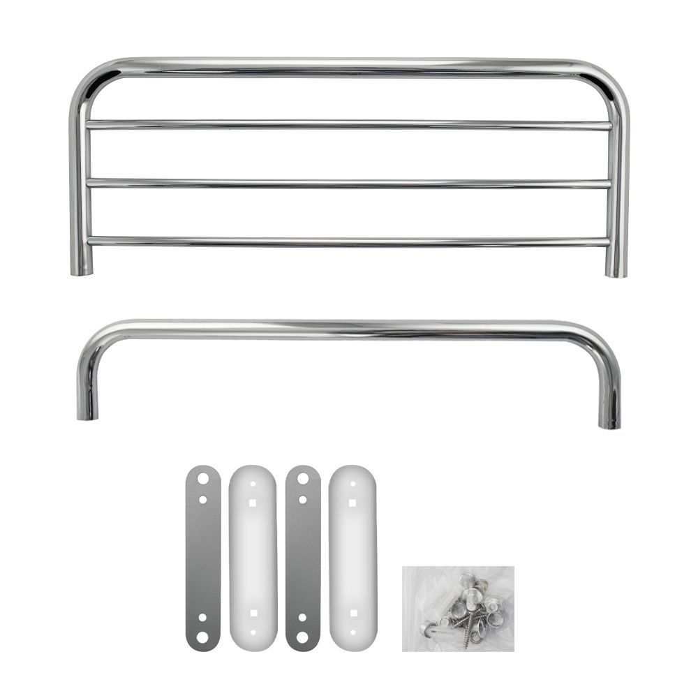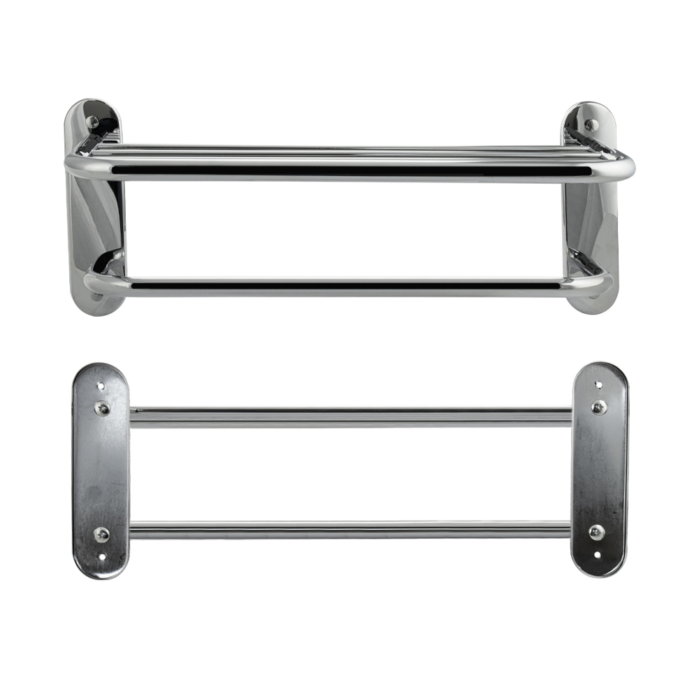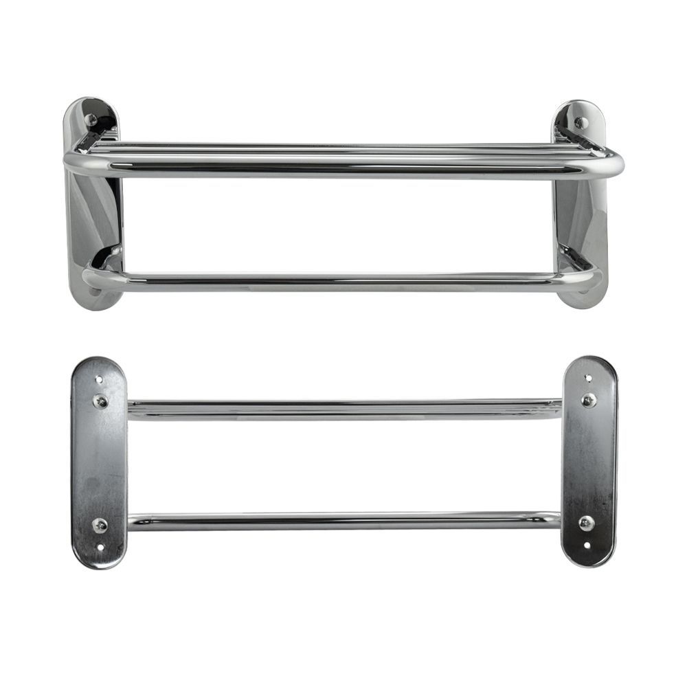 Полка для полотенца с опорой большая, для ванной, привлекает своим современным дизайном, многофункциональностью и надежностью конструкции. Вместительная верхняя часть полки в ванную комнату позволяет размещать на ней объёмные вещи. Кухня, ванная, прихожая, кладовка или гардеробная - эта полка идеально подойдет везде. Металлическая полка оснащена дополнительной перекладиной. Безупречно отшлифованная нержавеющая сталь делает её устойчивой к влаге и исключает появление ржавчины. Полка для ванной функциональное и практичное решение для любого интерьера. Материал изготовления — нержавеющая сталь. Хромированное покрытие очень стойко переносит истирания и обеспечивает зеркальный блеск изделия. Идеально подойдет не только для ванной, но и для кухни. Изделие крепится к стене с помощью дюбелей и саморезов (входят в комплект). Габаритные размеры: ширина 530 мм, высота 210 мм, глубина 210 мм. Вес - 1,100 кг, объём - 0,00572 м3.