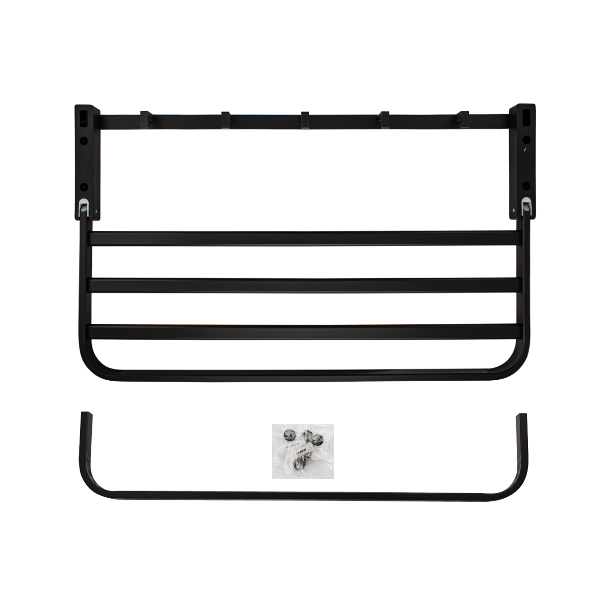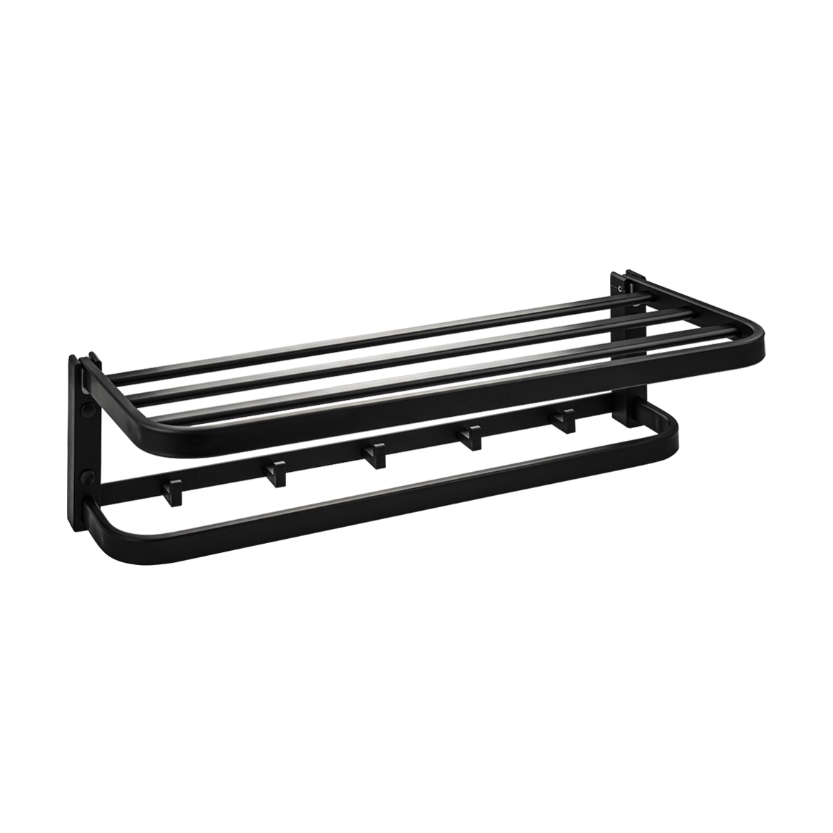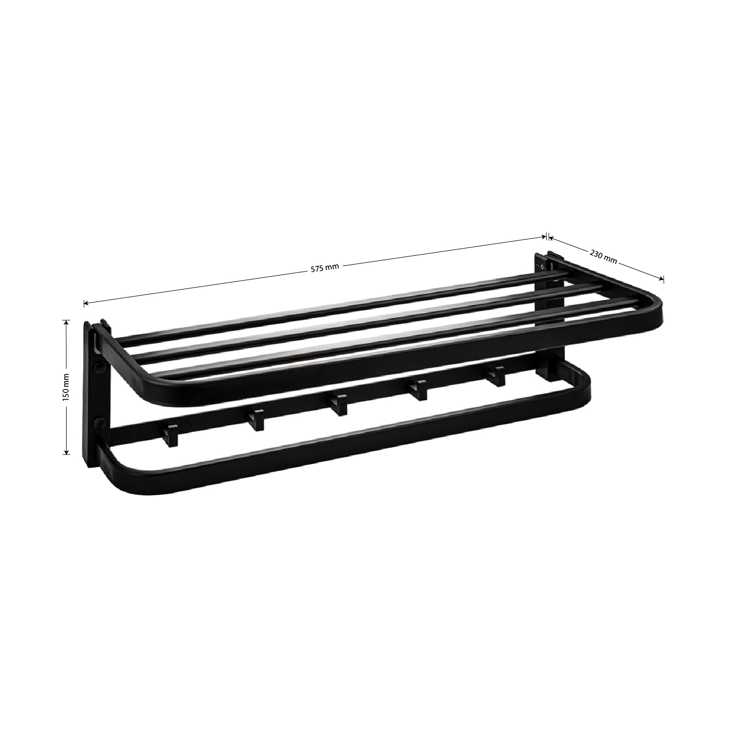 Полка для полотенца с опорой, большая, для ванной, привлекает своим современным дизайном, многофункциональностью и надежностью конструкции. Кухня, ванная, прихожая, кладовка или гардеробная - эта полка идеально подойдет везде. Металлическая полка оснащена дополнительной перекладиной. Безупречно отшлифованный алюминий с матовым покрытием черного цвета делает её устойчивой к влаге и исключает появление ржавчины. Полка для ванной функциональное и практичное решение для любого интерьера. Материал изготовления — алюминий. Матовое покрытие очень стойко переносит истирания и обеспечивает идеальный вид изделия изделия. Идеально подойдет не только для ванной, но и для кухни. Изделие крепится к стене с помощью дюбелей и саморезов (входят в комплект). Габаритные размеры: длина 575 мм, глубина 230 мм, высота 150 мм. Вес - 1.4 кг, объём - 0,013 м3.