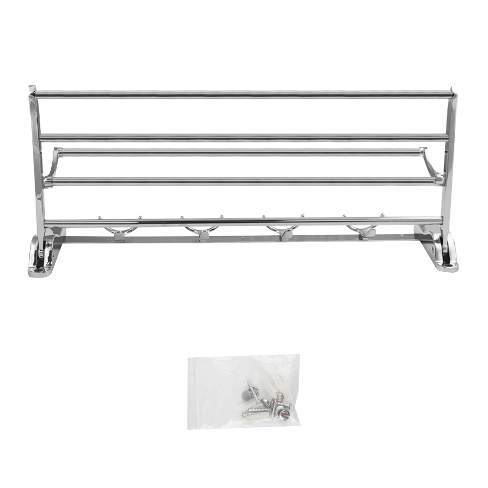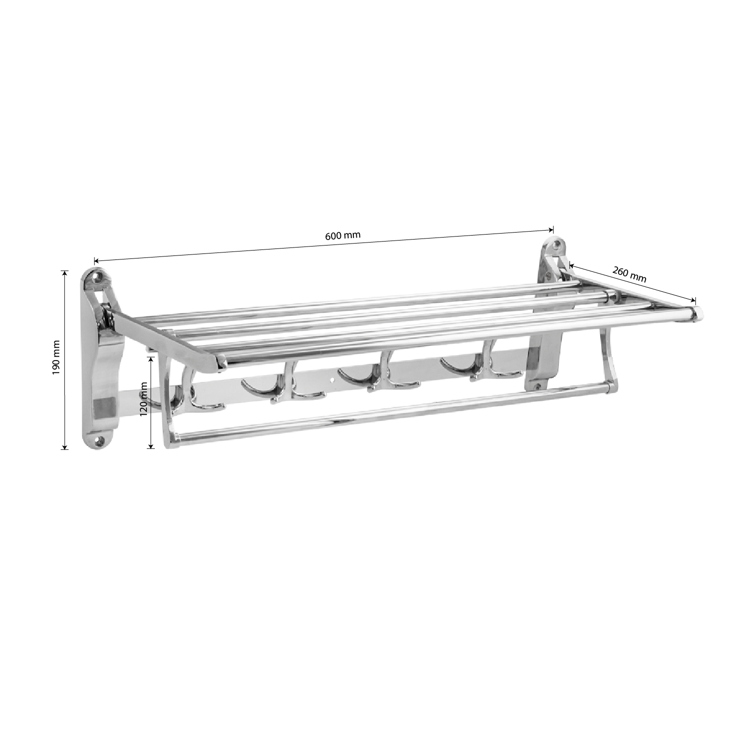 Полка для полотенца с опорой большая, для ванной привлекает своим современным дизайном, многофункциональностью и надежностью конструкции. Откидывающаяся на 90˚ верхняя часть полки в ванную комнату позволяет размещать её даже в самых тесных помещениях. Кухня, ванная, прихожая, кладовка или гардеробная - эта полка идеально подойдет везде. Металлическая полка оснащена дополнительной перекладиной и крючками. Безупречно отшлифованная нержавеющая сталь делает её устойчивой к влаге и исключает появление ржавчины. Полка для ванной ункциональное и практичное решение для любого интерьера. Материал изготовления — нержавеющая сталь марки 304. Хромированное покрытие очень стойко переносит истирания и обеспечивает зеркальный блеск изделия. Идеально подойдет не только для ванной, но и для кухни. Изделие крепится к стене с помощью дюбелей и саморезов (входят в комплект). Габаритные размеры: ширина 600 мм, высота 190 мм, глубина 260 мм. Вес - 2,200 кг, объём - 0,01200 м3.