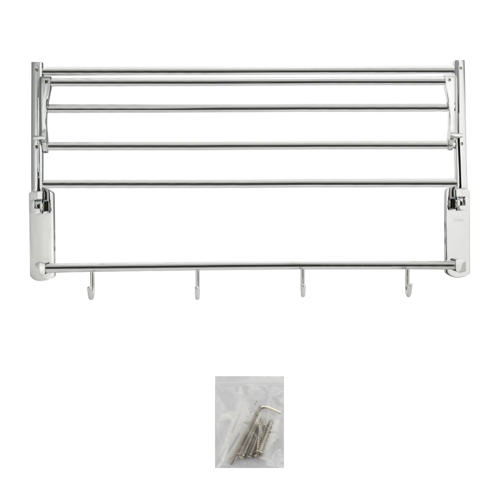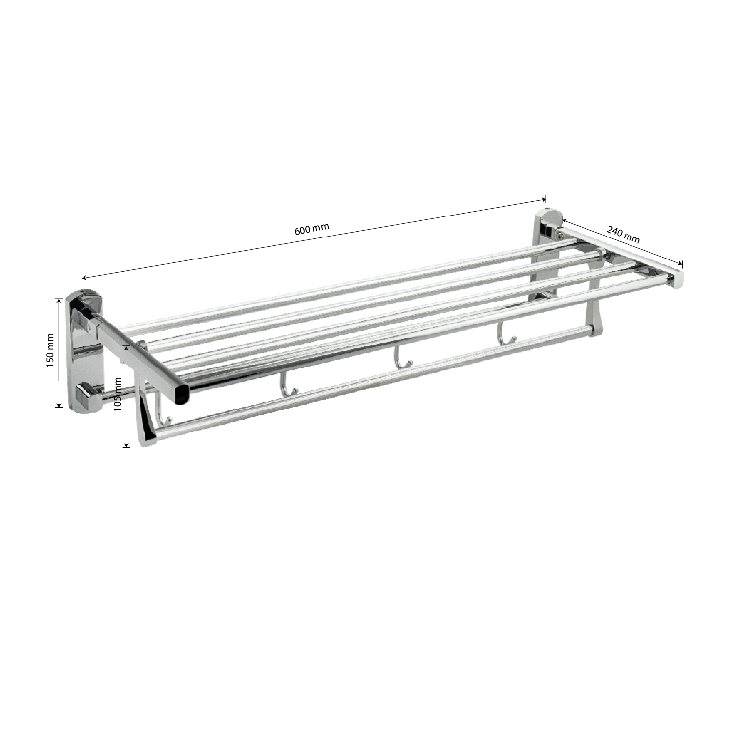 Полка для полотенца с опорой большая, для ванной, привлекает своим современным дизайном, многофункциональностью и надежностью конструкции. Откидывающаяся на 90° верхняя часть полки в ванную комнату позволяет размещать её даже в самых тесных помещениях. Кухня, ванная, прихожая, кладовка или гардеробная - эта полка идеально подойдет везде. Металлическая полка оснащена дополнительной перекладиной и крючками. Безупречно отшлифованная нержавеющая сталь делает её устойчивой к влаге и исключает появление ржавчины. Полка для ванной функциональное и практичное решение для любого интерьера. Материал изготовления — нержавеющая сталь марки 304. Хромированное покрытие очень стойко переносит истирания и обеспечивает зеркальный блеск изделия. Идеально подойдет не только для ванной, но и для кухни. Изделие крепится к стене с помощью дюбелей и саморезов (входят в комплект). Размеры: ширина 600 мм, глубина 240 мм, высота 150 мм. Вес - 2,200 кг, объём - 0,01610 м3.