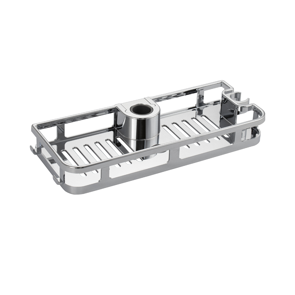 Полка для душевых стоек и стоек тропический душ, глубокая с двумя крючками и держателем для лейки, хромированная, произведена из долговечного и прочного АБС-пластика, благодаря чему она прослужит дольше во влажном помещении ванной комнаты, не желтеет, не ржавеет и не деформируется, не впитывает запахи. Габаритные размеры: длина 280 мм, ширина 110 мм, высота 40 мм, диаметр втулки 23 мм. Вес - 0,250 кг, объём - 0,00337 м3.