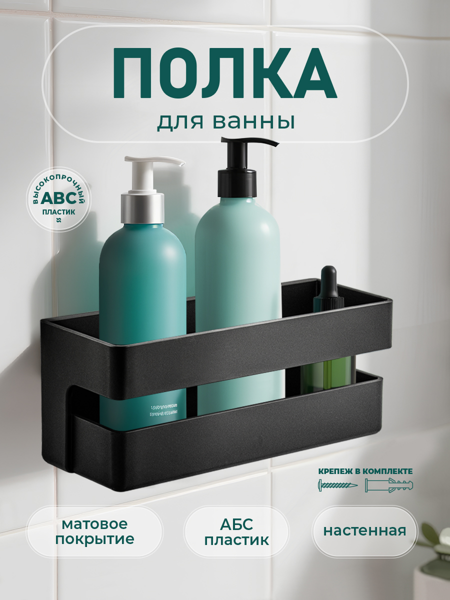 Полочка для принадлежностей прямая черная с литым дном, глубокая, обладает высокими эксплуатационными характеристиками и подходит для использования дома, в общественных местах: отелях, ресторанах и пр. Изготовлена из прочного пластика АБС с матовым покрытием, которое придает безупречный вид и долговечность. Аксессуар не занимают много места, надежно фиксируется к стене при помощи набора креплений (входят в комплект) и служит удобным местом для хранения бытовых и косметических средств. Габаритные размеры: ширина 280 мм, длина края 100 мм, высота 110 мм. Вес - 0,66 кг, объём - 0,00458 м3