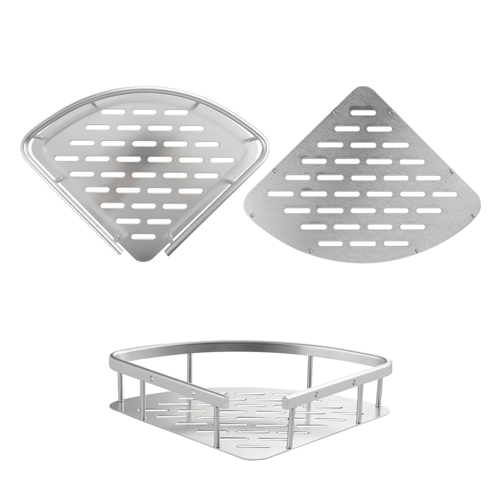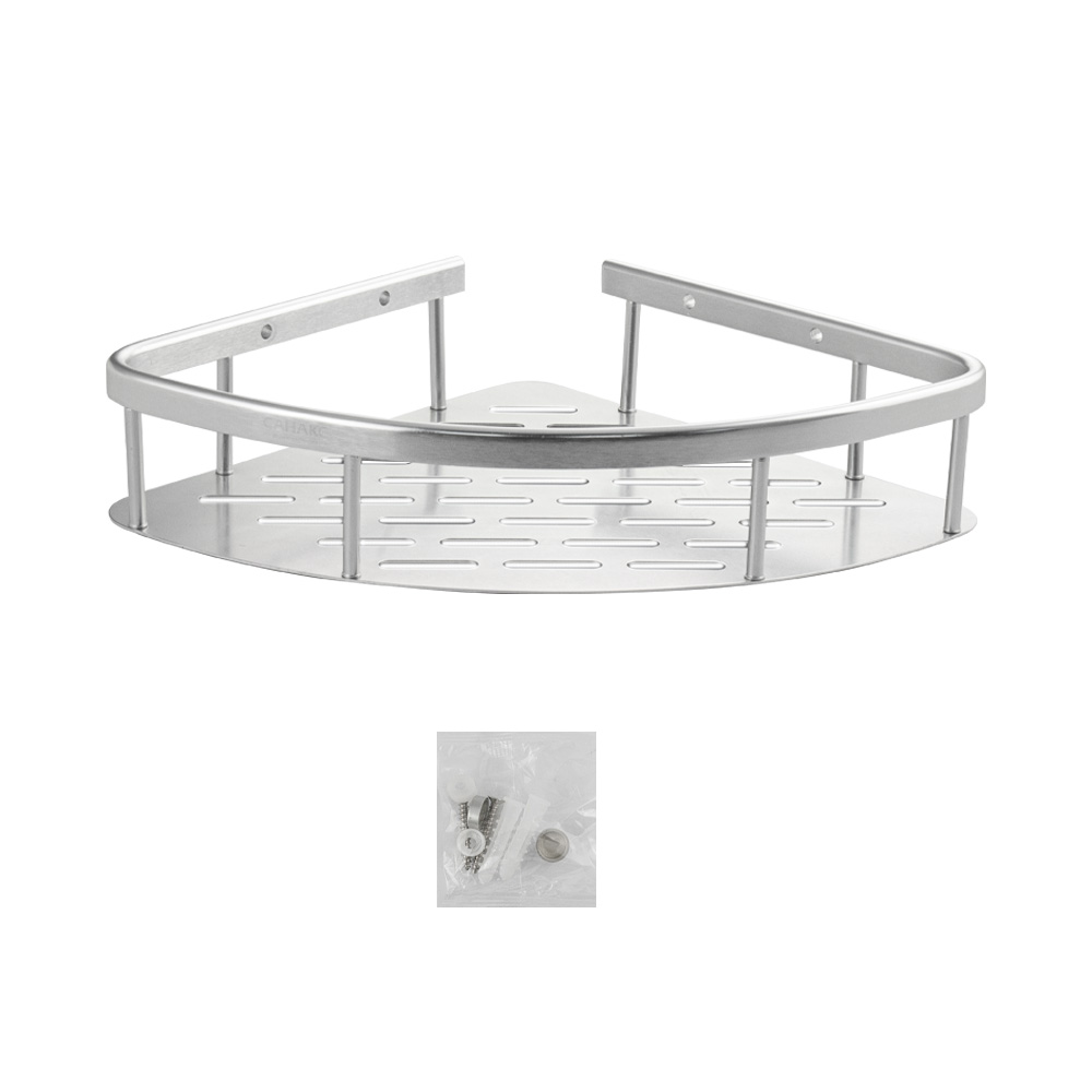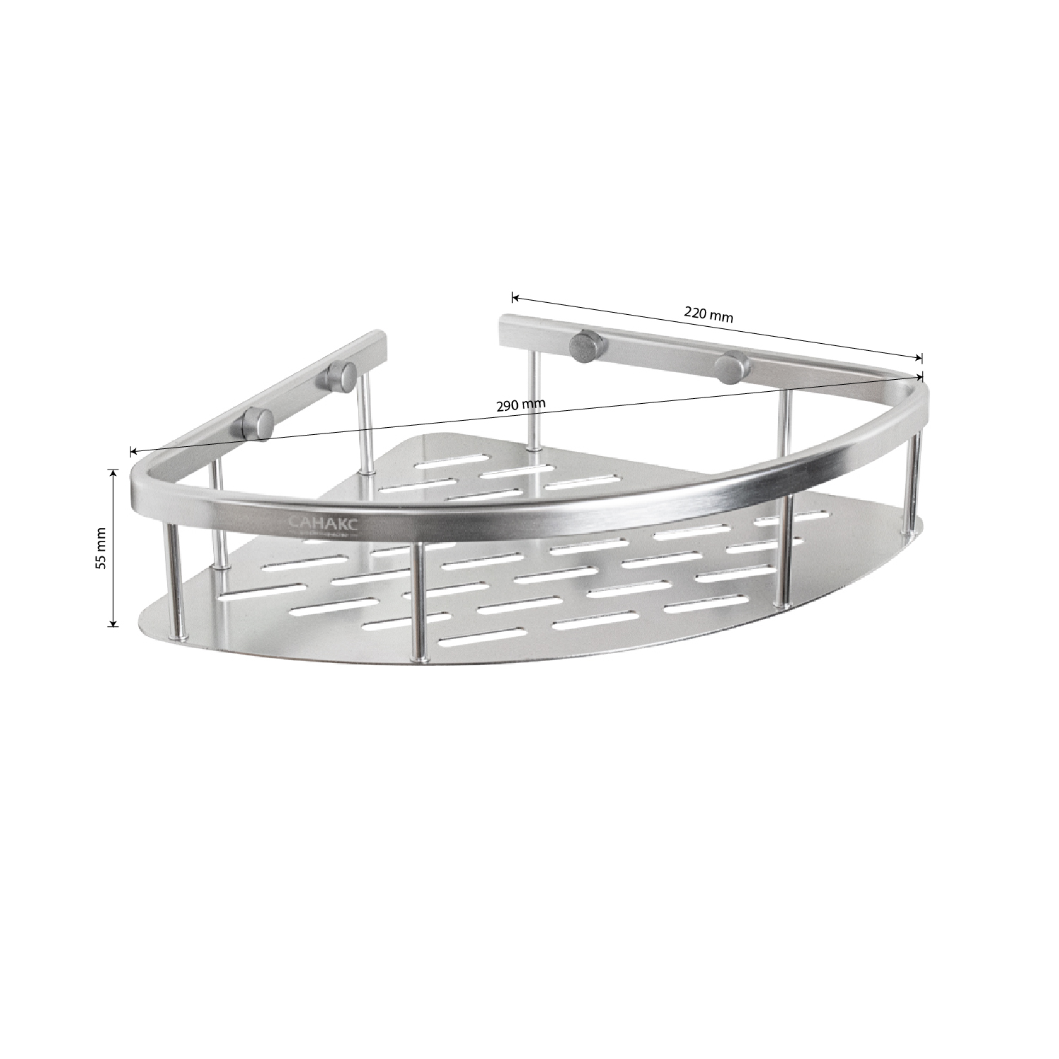 Полочка для принадлежностей угловая, однаэтажная, с литым дном, обладает высокими эксплуатационными характеристиками и подходит для использования дома, в общественных местах: отелях, ресторанах и пр. Изготовлена из высокопрочного алюминия с матовым покрытием, которое придает безупречный вид и долговечность. Аксессуар не занимает много места, надежно фиксируется к стене при помощи набора креплений и служит удобным местом для хранения бытовых и косметических средств. Габаритные размеры: высота 55 мм, ширина 290 мм, глубина 220 мм. Вес - 0,300 кг, объём - 0,00276 м3.
