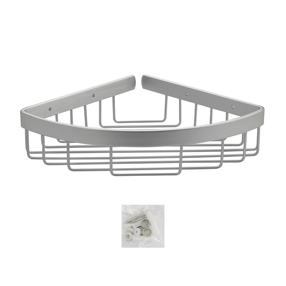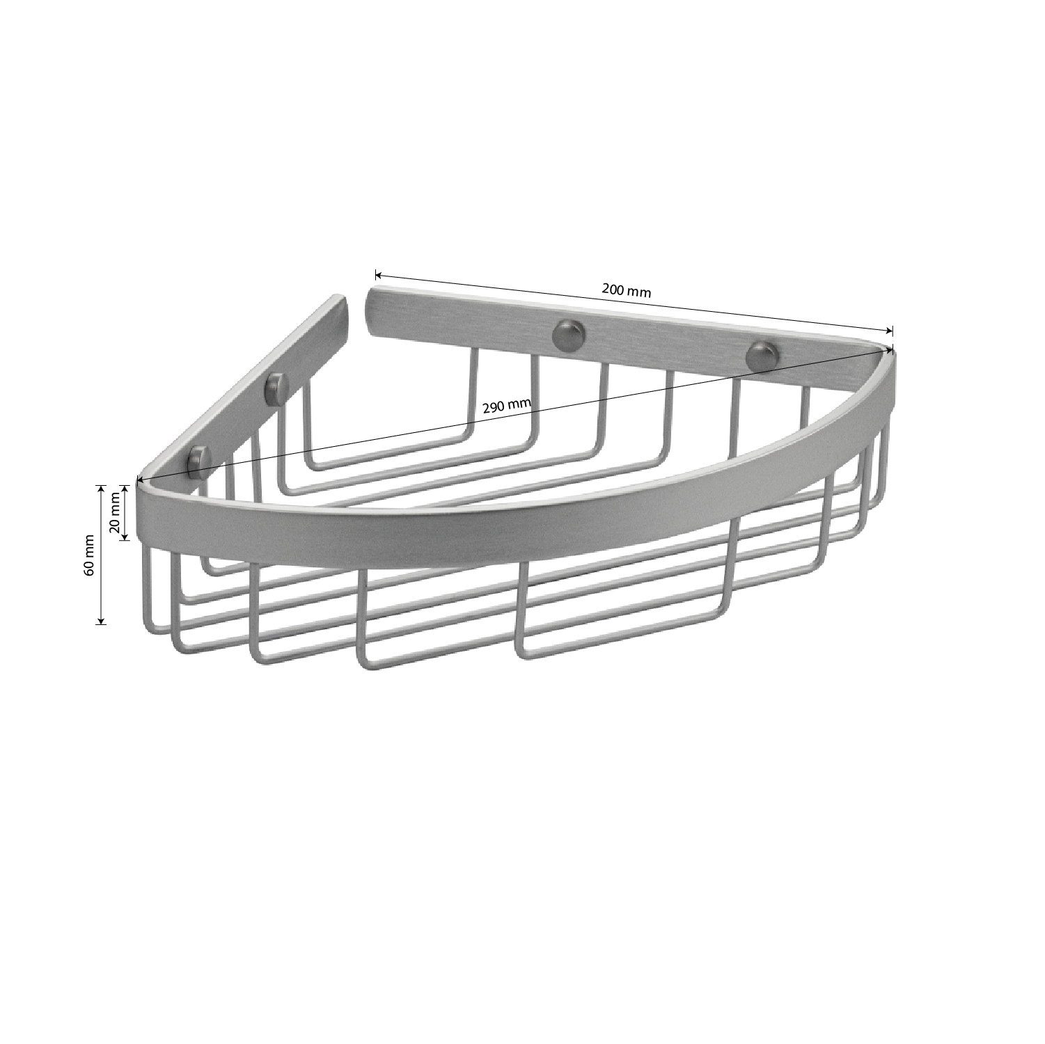 Полочка для принадлежностей угловая, решётка, однаэтажная, с бортом 20 мм, обладает высокими эксплуатационными характеристиками и подходит для использования дома, в общественных местах: отелях, ресторанах и пр. Изготовлена из прочного алюминия с матовым покрытием, которое придает безупречный вид и долговечность. Аксессуар не занимает много места, надежно фиксируется к стене при помощи набора креплений (входят в комплект) и служит удобным местом для хранения бытовых и косметических средств. Габаритные размеры: длина 200 мм, ширина 290 мм, высота 60 мм. Вес - 0,300 кг, объём - 0,00290 м3.