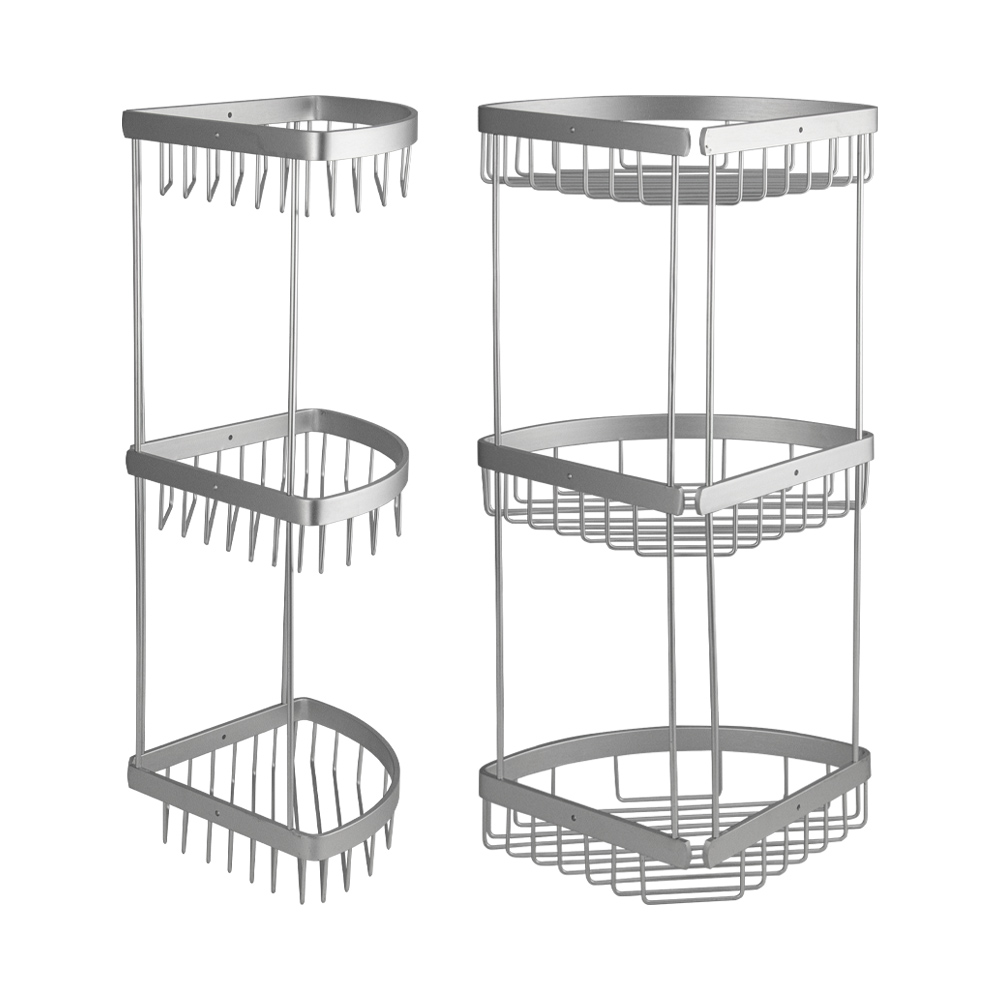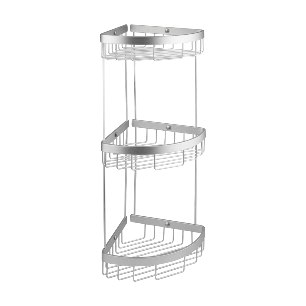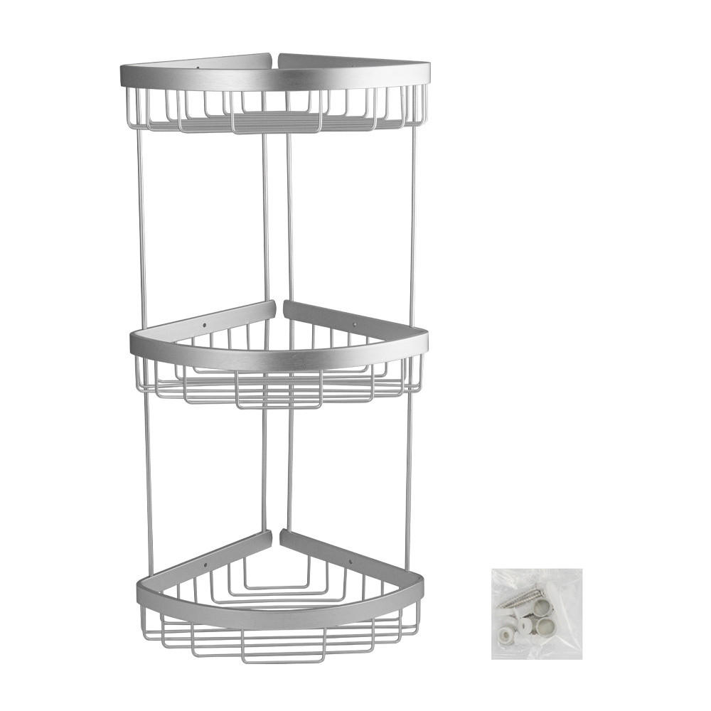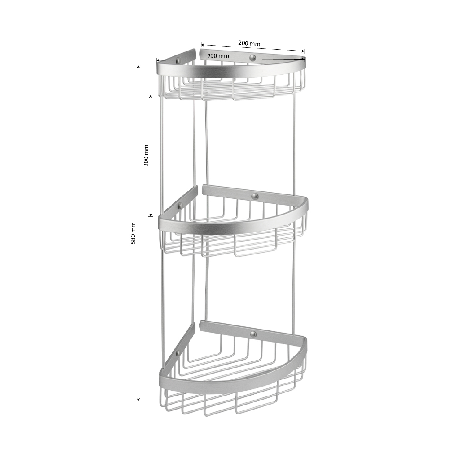 Полочка для принадлежностей угловая, решётка, трёхэтажная, с бортом 20 мм, обладает высокими эксплуатационными характеристиками и подходит для использования дома, в общественных местах: отелях, ресторанах и пр. Изготовлена из прочного алюминия с матовым покрытием, которое придает безупречный вид и долговечность. Аксессуар не занимает много места, надежно фиксируется к стене при помощи набора креплений (входят в комплект) и служит удобным местом для хранения бытовых и косметических средств. Габаритные размеры: высота 580 мм, ширина 290 мм, длина 200 мм, расстояние между полками 200 мм. Вес - 1,000 кг, объём - 0,01700 м3.