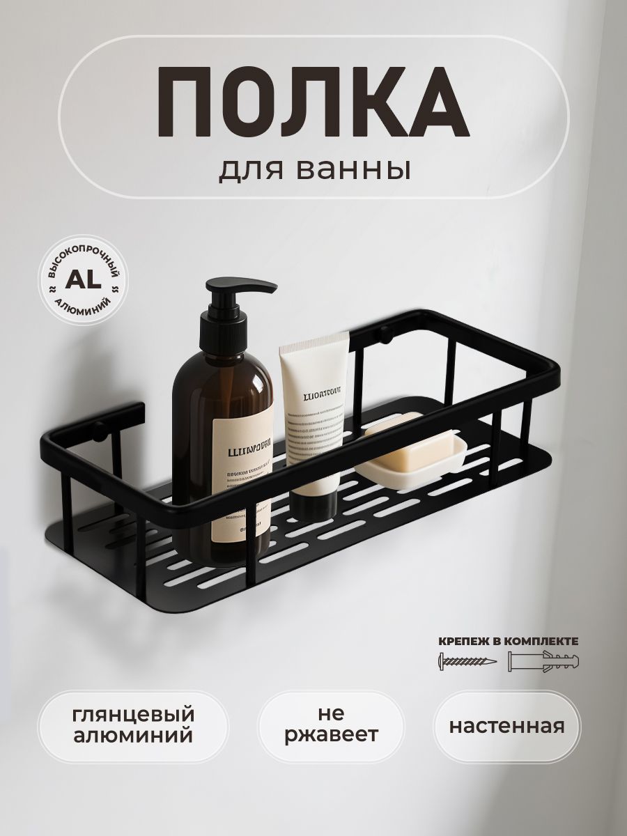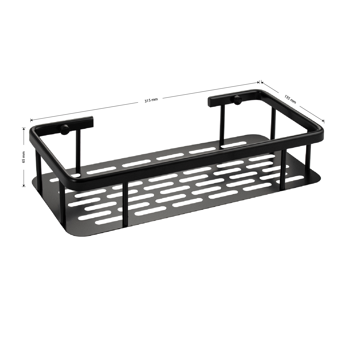 Полочка для принадлежностей прямоугольная с литым дном однаэтажная, обладает высокими эксплуатационными характеристиками и подходит для использования дома, в общественных местах: отелях, ресторанах и пр. Изготовлена из прочного алюминия с матовым покрытием чёрного цвета, которое придает безупречный вид и долговечность. Аксессуар не занимает много места, надежно фиксируется к стене при помощи набора креплений (входят в комплект) и служит удобным местом для хранения бытовых и косметических средств. Габаритные размеры: длина 315 мм, высота 65 мм, глубина 135 мм. Вес - 0,300 кг, объём - 0,00312 м3.