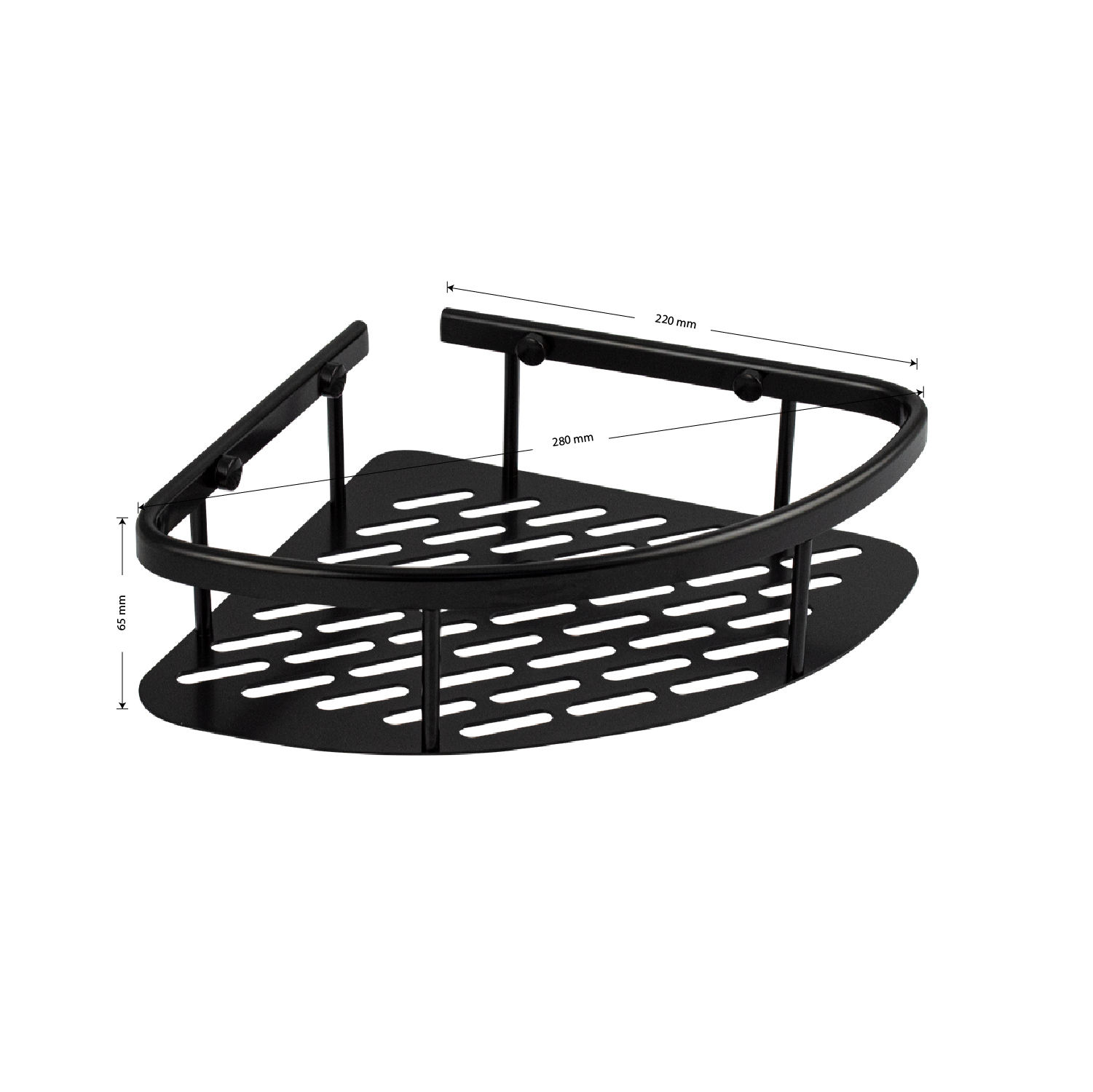 Полочка для принадлежностей закруглённая с литым дном однаэтажная, обладает высокими эксплуатационными характеристиками и подходит для использования дома, в общественных местах: отелях, ресторанах и пр. Изготовлена из высокопрочного алюминия с матовым покрытием чёрного цвета, которое придает безупречный вид и долговечность. Аксессуар не занимает много места, надежно фиксируется к стене при помощи набора креплений (входят в комплект) и служит удобным местом для хранения бытовых и косметических средств.Габаритные размеры: высота 65 мм, ширина 280 мм, глубина 220 мм. Вес - 0,300 кг, объём - 0,00312 м3.