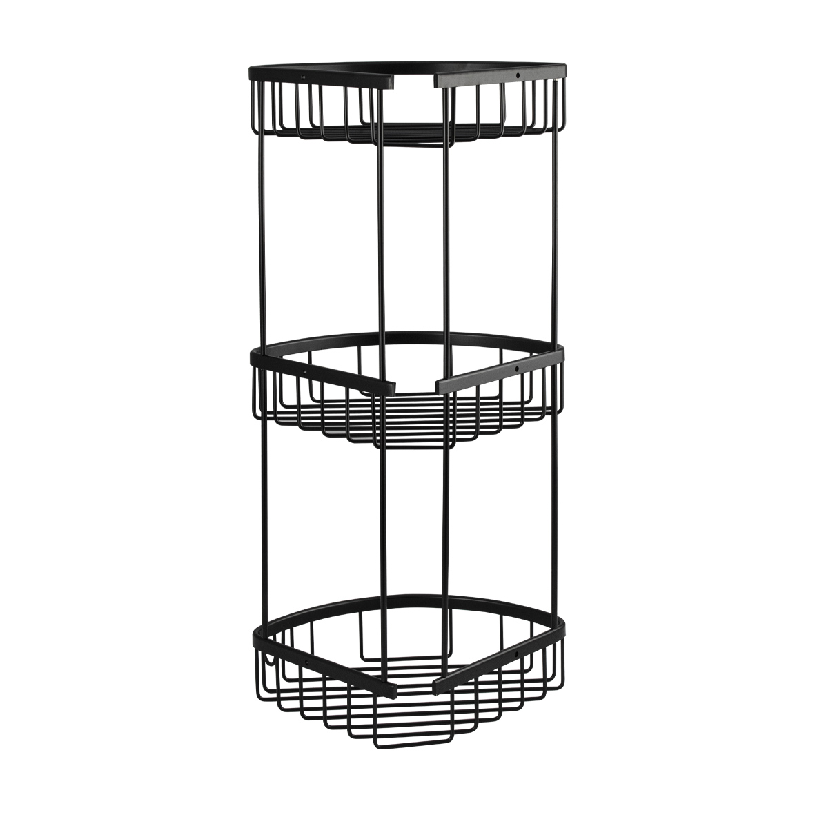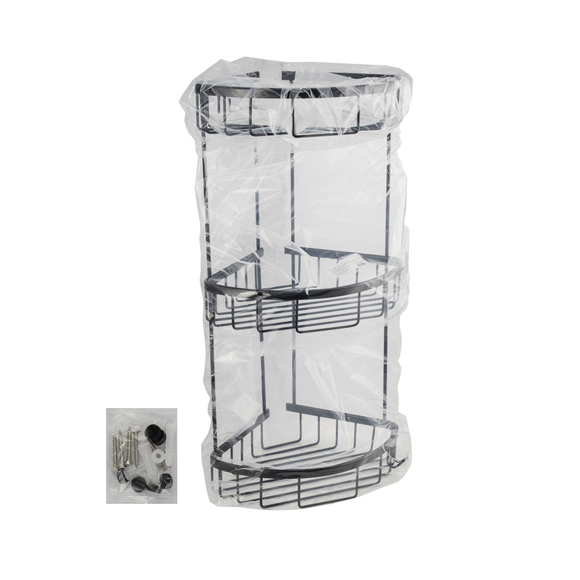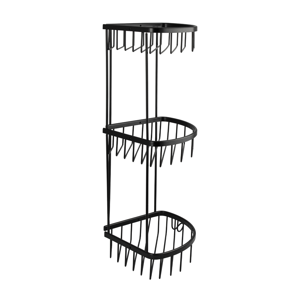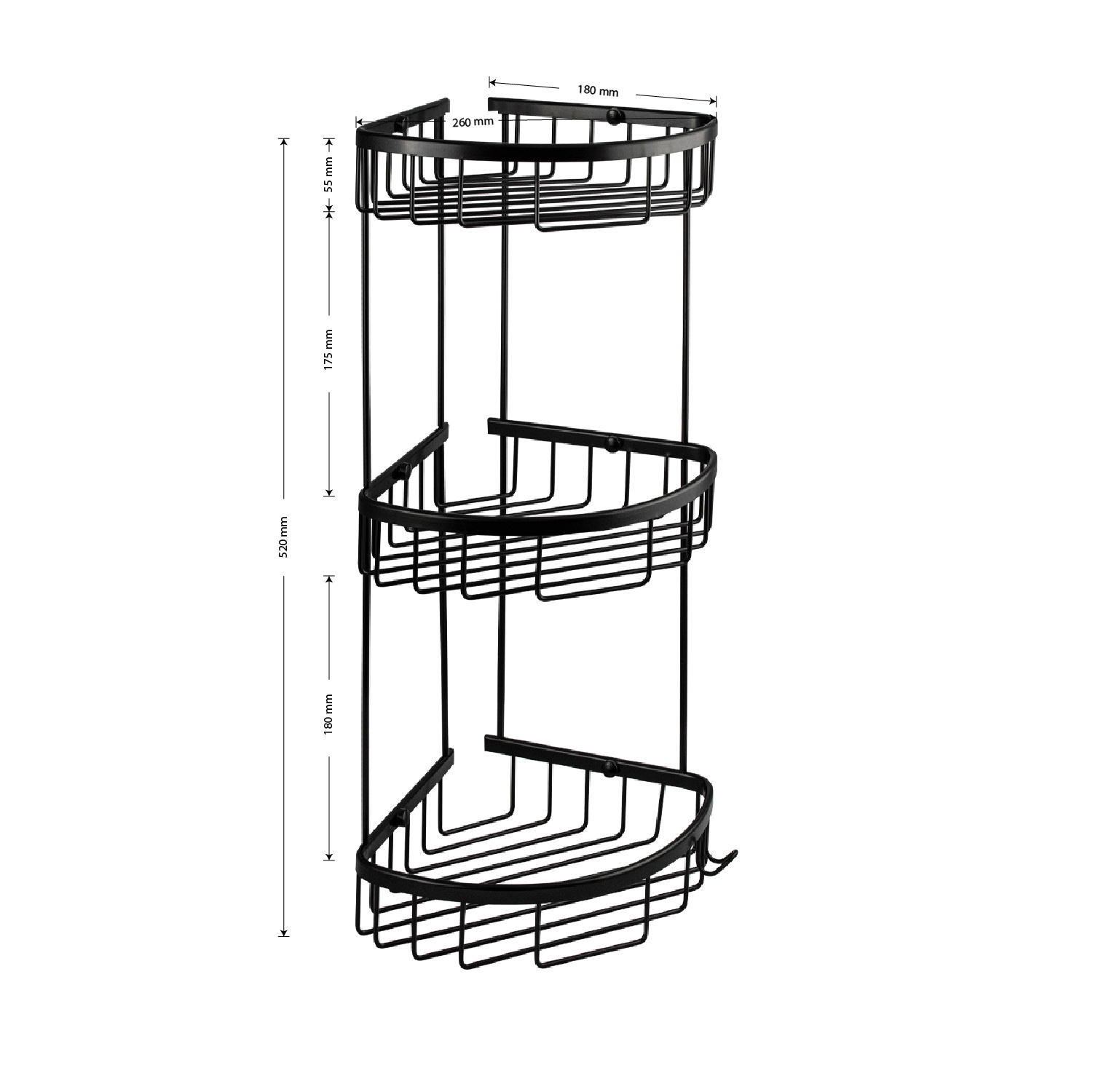 Полочка угловая овальная трёхэтажная для принадлежностей, решётка обладает высокими эксплуатационными характеристиками и подходит для использования дома, в общественных местах: отелях, ресторанах и пр. Изготовлена из прочного алюминия с матовым покрытием чёрного цвета, которое придает безупречный вид и долговечность. Металлическая полка оснащена крючками. Аксессуар не занимает много места, надежно фиксируется к стене при помощи набора креплений (входят в комплект) и служит удобным местом для хранения бытовых и косметических средств. Габаритные размеры: высота 520 мм, ширина 280 мм, длина 180 мм, расстояние между полками 180 и 175 мм. Вес - 0,700 кг, объём - 0,01333 м3.