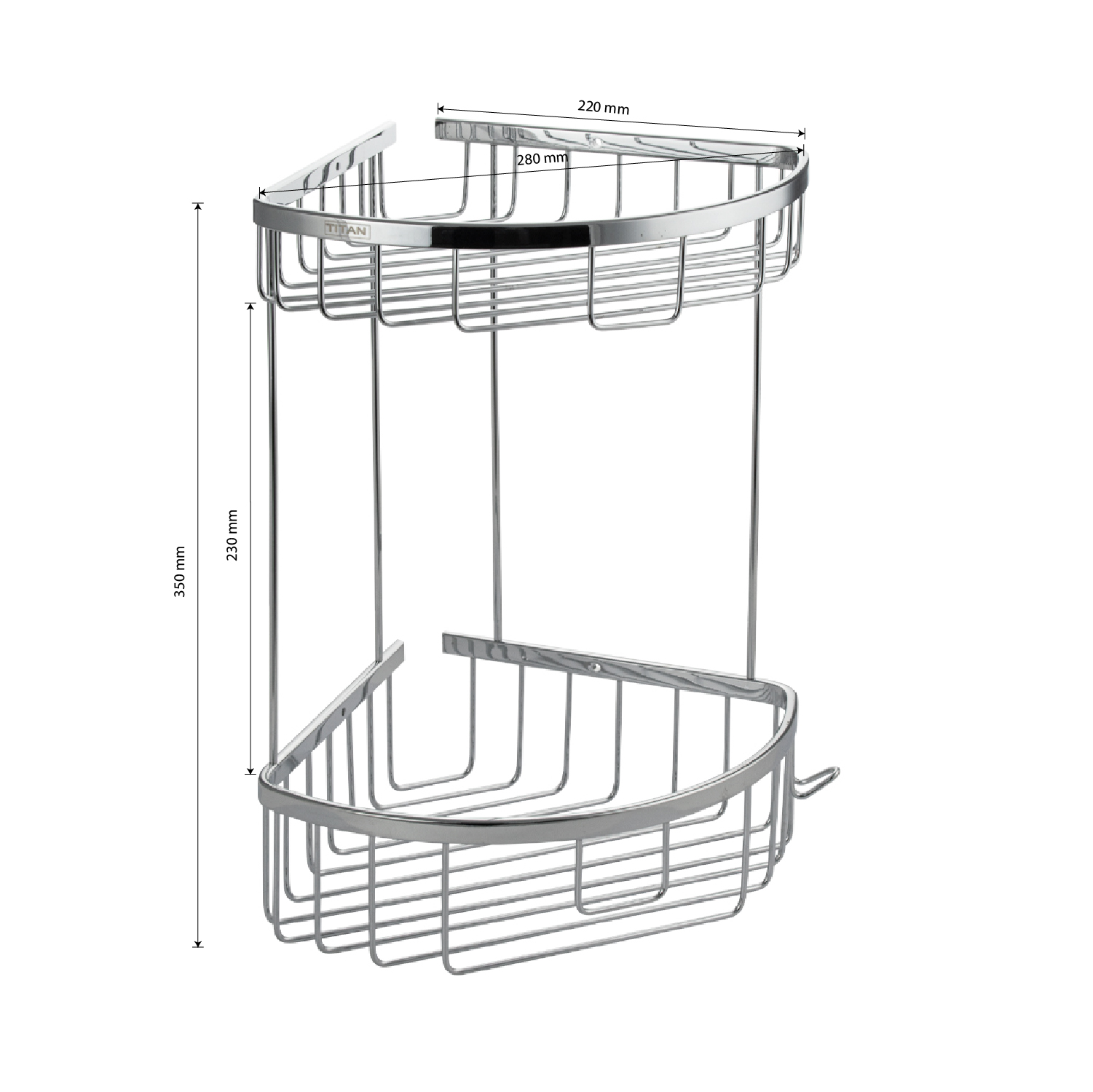 Полочка угловая овальная двухэтажная для принадлежностей, решётка обладает высокими эксплуатационными характеристиками и подходит для использования дома, в общественных местах: отелях, ресторанах и пр. Изготовлена из прочной нержавеющей стали с хромоникелевым покрытием, которое придает безупречный глянцевый блеск и долговечность. Металлическая полка оснащена крючком. Аксессуар не занимает много места, надежно фиксируется к стене при помощи набора креплений (входят в комплект) и служит удобным местом для хранения бытовых и косметических средств. Габаритные размеры: высота 350 мм, ширина 280 мм, длина стороны 220 мм, расстояние между полками 230 мм. Вес - 1,500 кг, объём - 0,02220 м3.