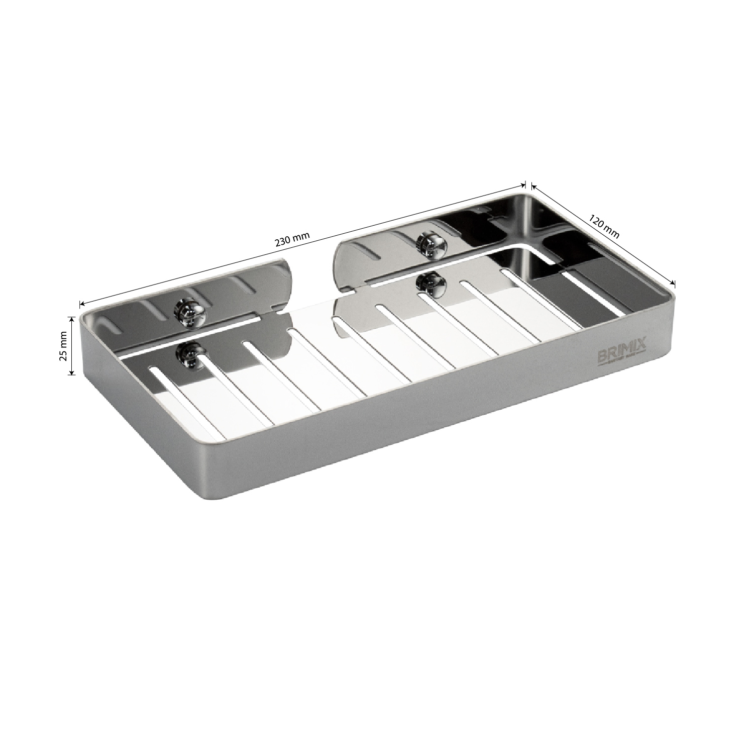 Полочка для принадлежностей, прямоугольная, с литым дном, однаэтажная, обладает высокими эксплуатационными характеристиками и подходит для использования дома, в общественных местах: отелях, ресторанах и пр. Изготовлена из прочной нержавеющей стали с хромоникелевым покрытием, которое придает безупречный глянцевый блеск и долговечность. Аксессуар не занимает много места, надежно фиксируется к стене при помощи набора креплений (входят в комплект) и служит удобным местом для хранения бытовых и косметических средств. Габаритные размеры: длина 230 мм, ширина 120 мм, высота 25 мм. Вес - 0,450 кг, объём - 0,00147 м3.