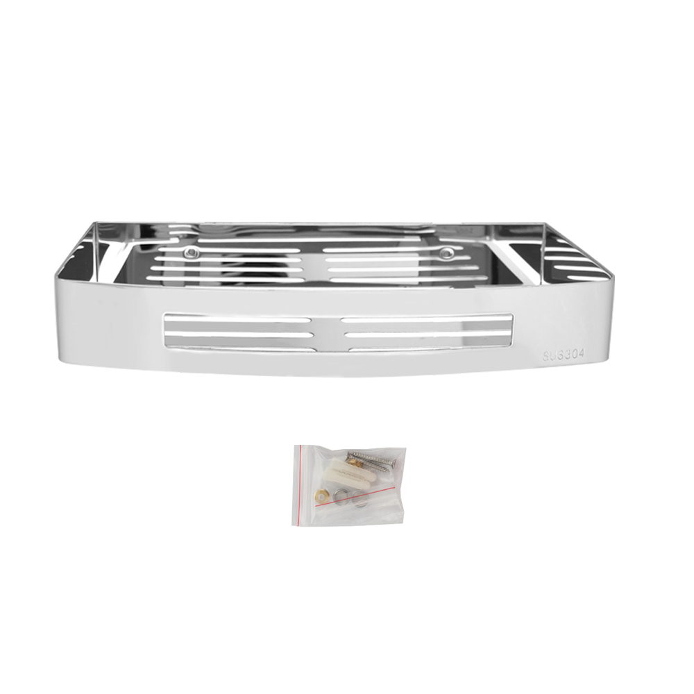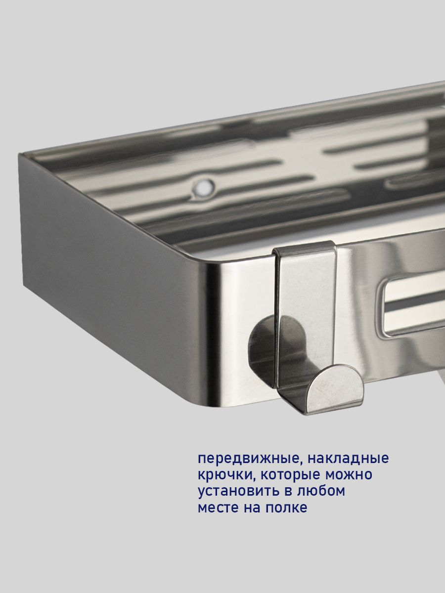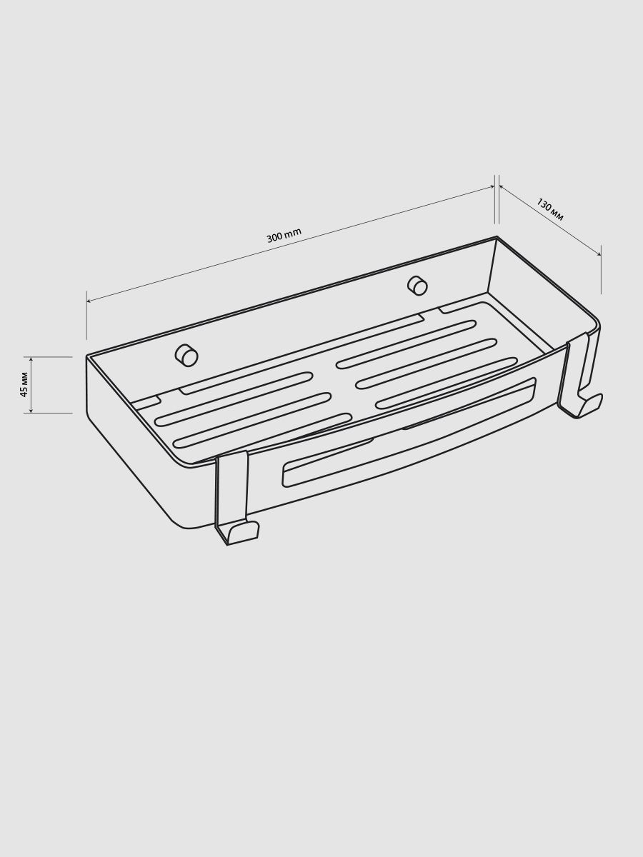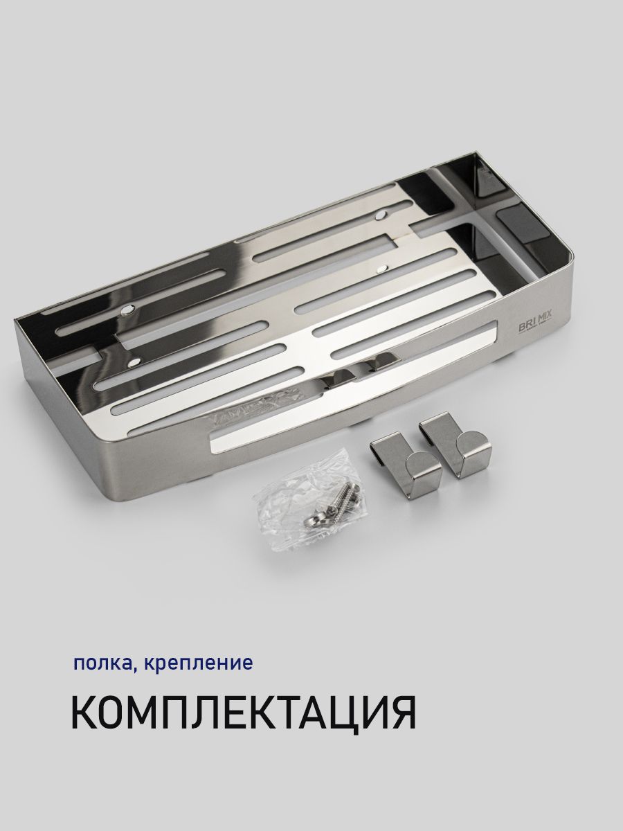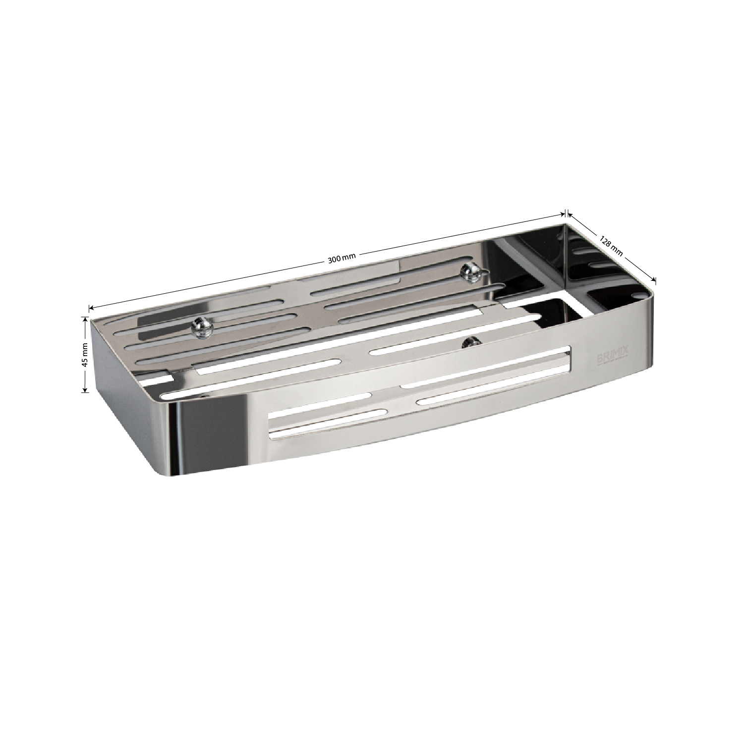Полочка для принадлежностей, прямоугольная, с литым дном, одноэтажная, обладает высокими эксплуатационными характеристиками и подходит для использования дома, в общественных местах: отелях, ресторанах и пр. Изготовлена из прочной нержавеющей стали с хромоникелевым покрытием, которое придает безупречный глянцевый блеск и долговечность. Аксессуар не занимает много места, надежно фиксируется к стене при помощи набора креплений (входят в комплект) и служит удобным местом для хранения бытовых и косметических средств. Габаритные размеры: длина 300 мм, ширина 128 мм, высота 45 мм. Вес - 0,800 кг, объём - 0,00337 м3.