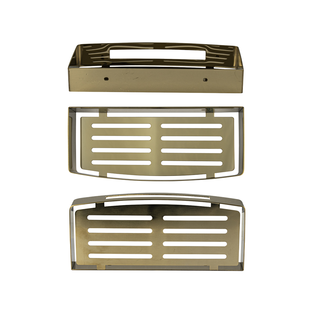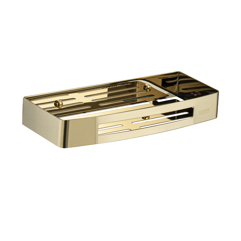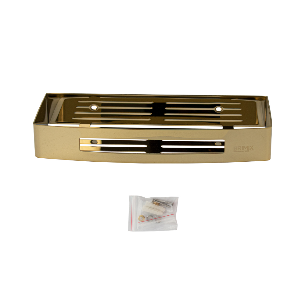Полочка для принадлежностей, прямоугольная, с литым дном, одноэтажная, обладает высокими эксплуатационными характеристиками и подходит для использования дома, в общественных местах: отелях, ресторанах и пр. Изготовлена из прочной нержавеющей стали с золотым покрытием, которое придает безупречный внешний вид и долговечность. Аксессуар не занимает много места, надежно фиксируется к стене при помощи набора креплений (входят в комплект) и служит удобным местом для хранения бытовых и косметических средств. Габаритные размеры: длина 300 мм, ширина 128 мм, высота 45 мм. Вес - 0,740 кг, объём - 0,0035 м3.