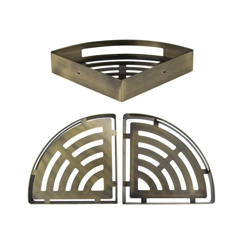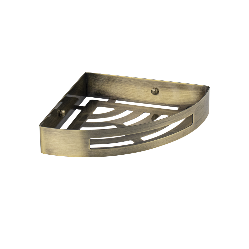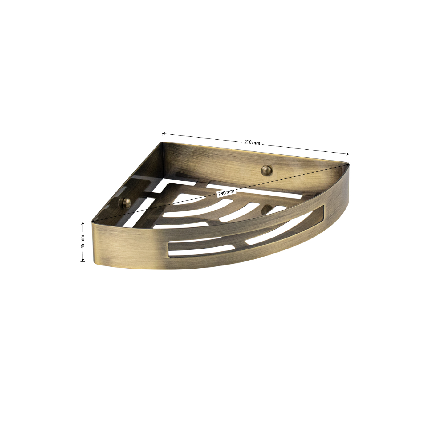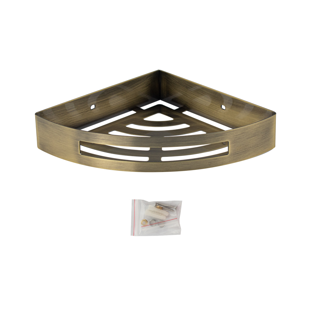 Полочка для принадлежностей, угловая, с литым дном, одноэтажная, обладает высокими эксплуатационными характеристиками и подходит для использования дома, в общественных местах: отелях, ресторанах и пр. Изготовлена из прочной нержавеющей стали с бронзовым покрытием, которое придает безупречный внешний вид и долговечность. Аксессуар не занимает много места, надежно фиксируется к стене при помощи набора креплений (входят в комплект) и служит удобным местом для хранения бытовых и косметических средств. Габаритные размеры: высота 45 мм, ширина 290 мм, глубина 220 мм. Вес - 0,700 кг, объём - 0,004 м3.