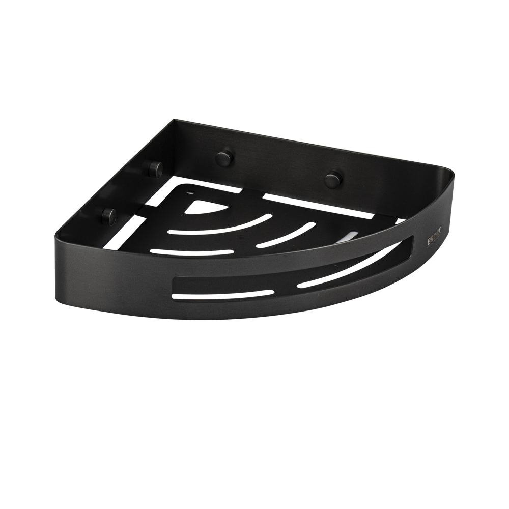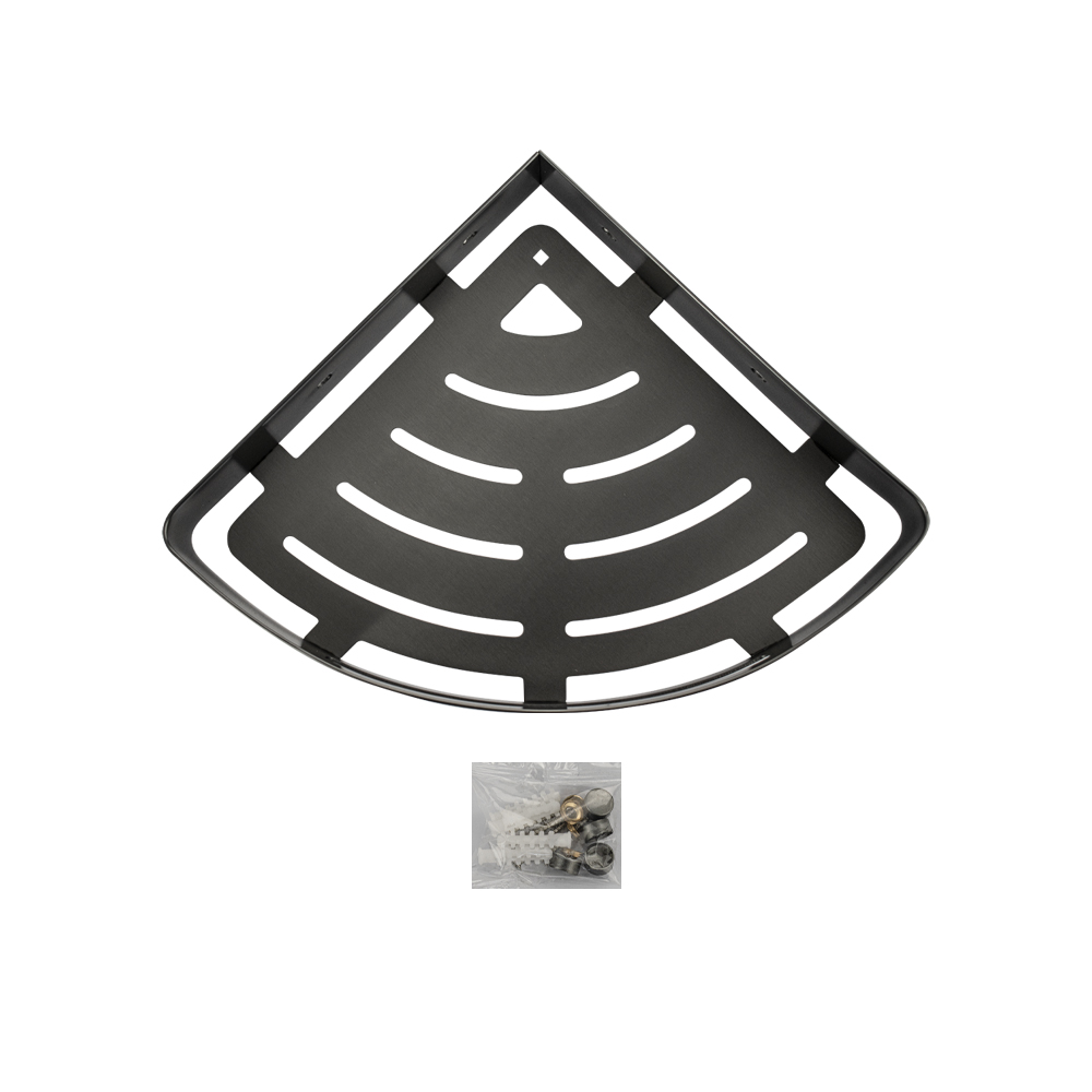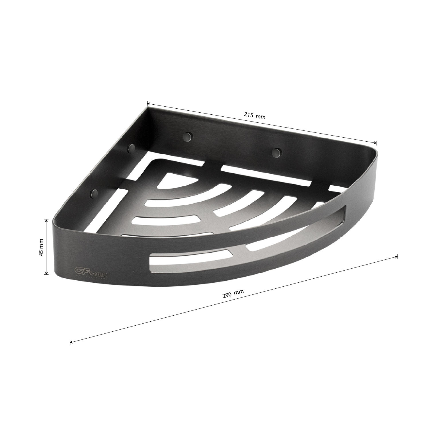 Полочка для принадлежностей треугольная, угловая, закруглённая, с литым дном одноэтажная, обладает высокими эксплуатационными характеристиками и подходит для использования дома, в общественных местах: отелях, ресторанах и пр. Изготовлена из прочной нержавеющей стали с графитовым матовым покрытием, которое придает безупречный вид и долговечность. Аксессуар не занимает много места, надежно фиксируется к стене при помощи набора креплений (входят в комплект) и служит удобным местом для хранения бытовых и косметических средств. Габаритные размеры: длина стороны 215 мм, высота 45 мм, ширина 290 мм. Вес - 0,700 кг, объём - 0,00500 м3