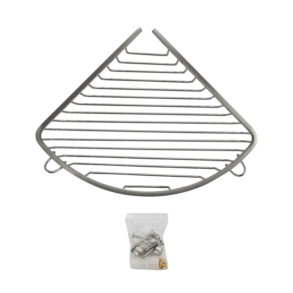 Полочка для принадлежностей треугольная, угловая, закруглённая, решётка, двухэтажная, обладает высокими эксплуатационными характеристиками и подходит для использования дома, в общественных местах: отелях, ресторанах и пр. Изготовлена из прочной нержавеющей стали марки SUS 304 с матовым покрытием, которое придает безупречный стильный вид и долговечность. Металлическая полка оснащена крючками. Аксессуар не занимает много места, надежно фиксируется к стене при помощи набора креплений (входят в комплект) и служит удобным местом для хранения бытовых и косметических средств. Габаритные размеры: высота 345 мм, ширина 290 мм, длина стороны 220 мм, расстояние между полками 205 мм. Вес - 2,000 кг, объём - 0,02168 м3.