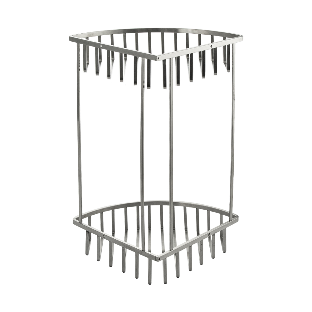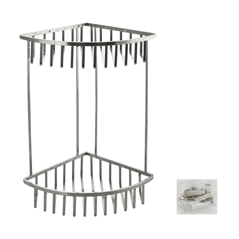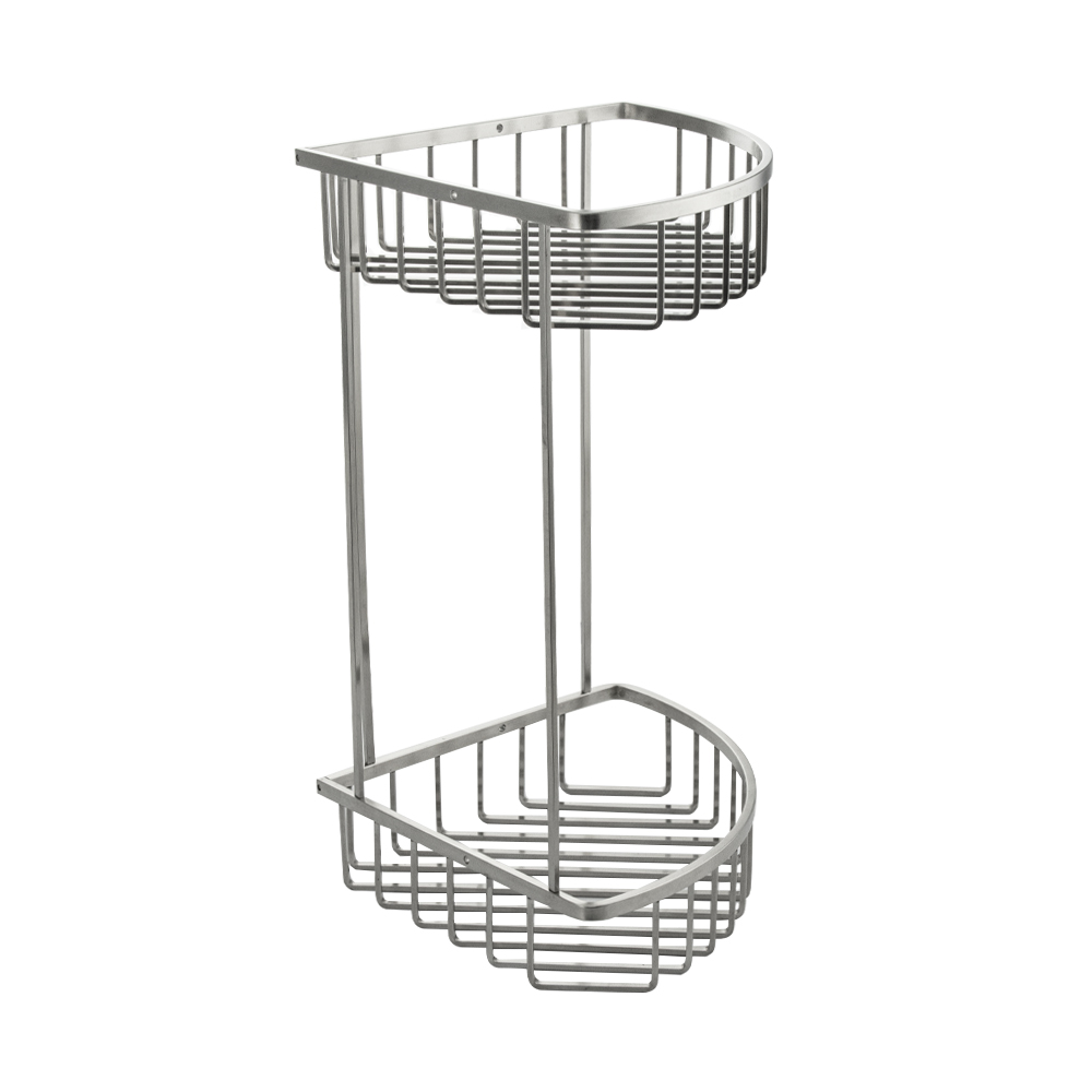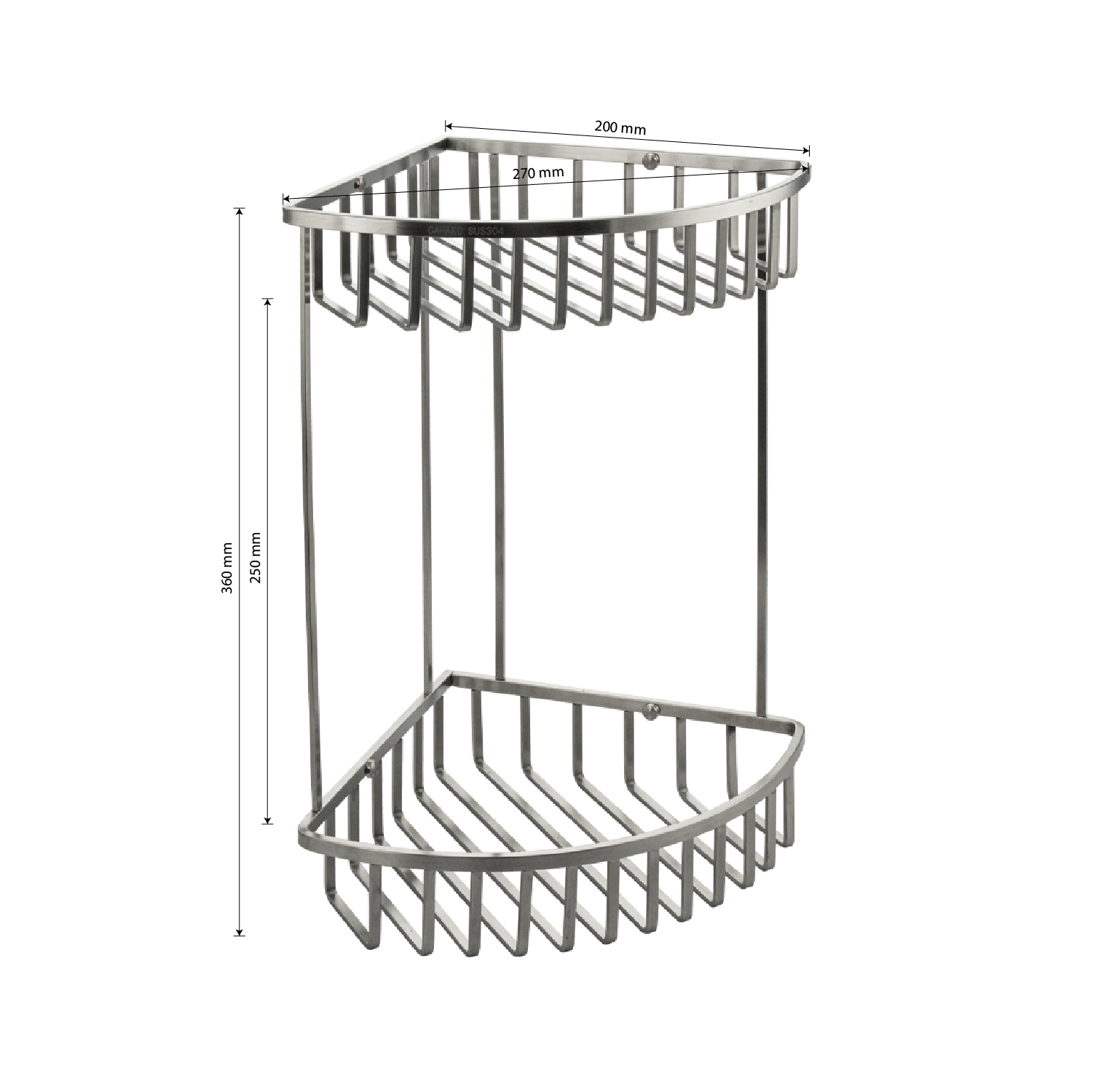 Полочка угловая, овальная, двухэтажная, для принадлежностей, решётка с плоскими толстыми прутьями, обладает высокими эксплуатационными характеристиками и подходит для использования дома, в общественных местах: отелях, ресторанах и пр. Изготовлена из прочной нержавеющей стали с матовым покрытием, которое придает безупречный внешний вид и долговечность. Аксессуар не занимает много места, надежно фиксируется к стене при помощи набора креплений (входят в комплект) и служит удобным местом для хранения бытовых и косметических средств. Габаритные размеры: высота 360 мм, ширина 270 мм, глубина 200 мм, расстояние между полками 250 мм. Вес - 1,200 кг, объём - 0,01020 м3.