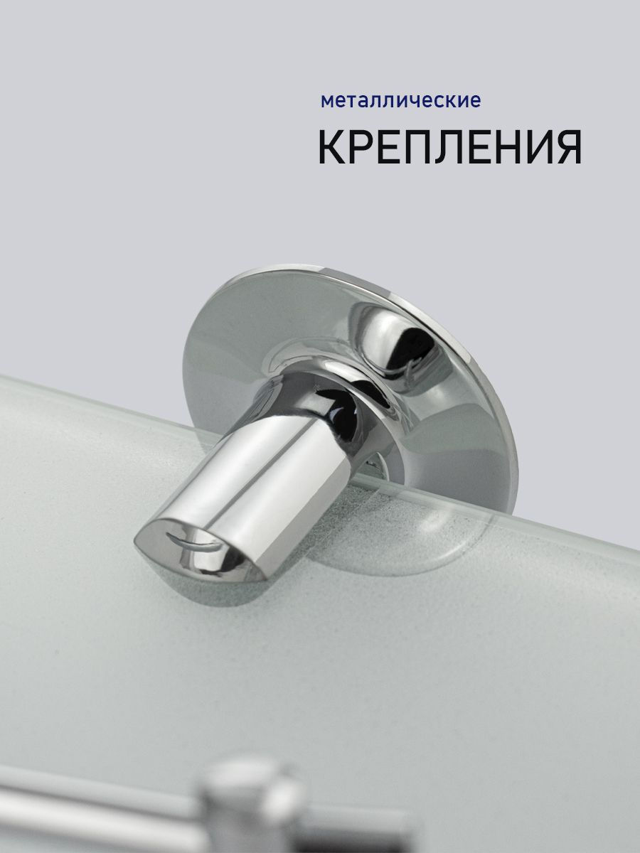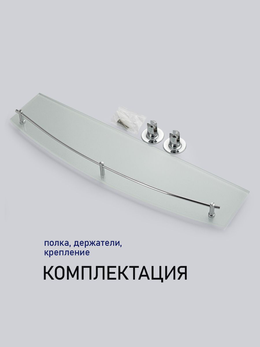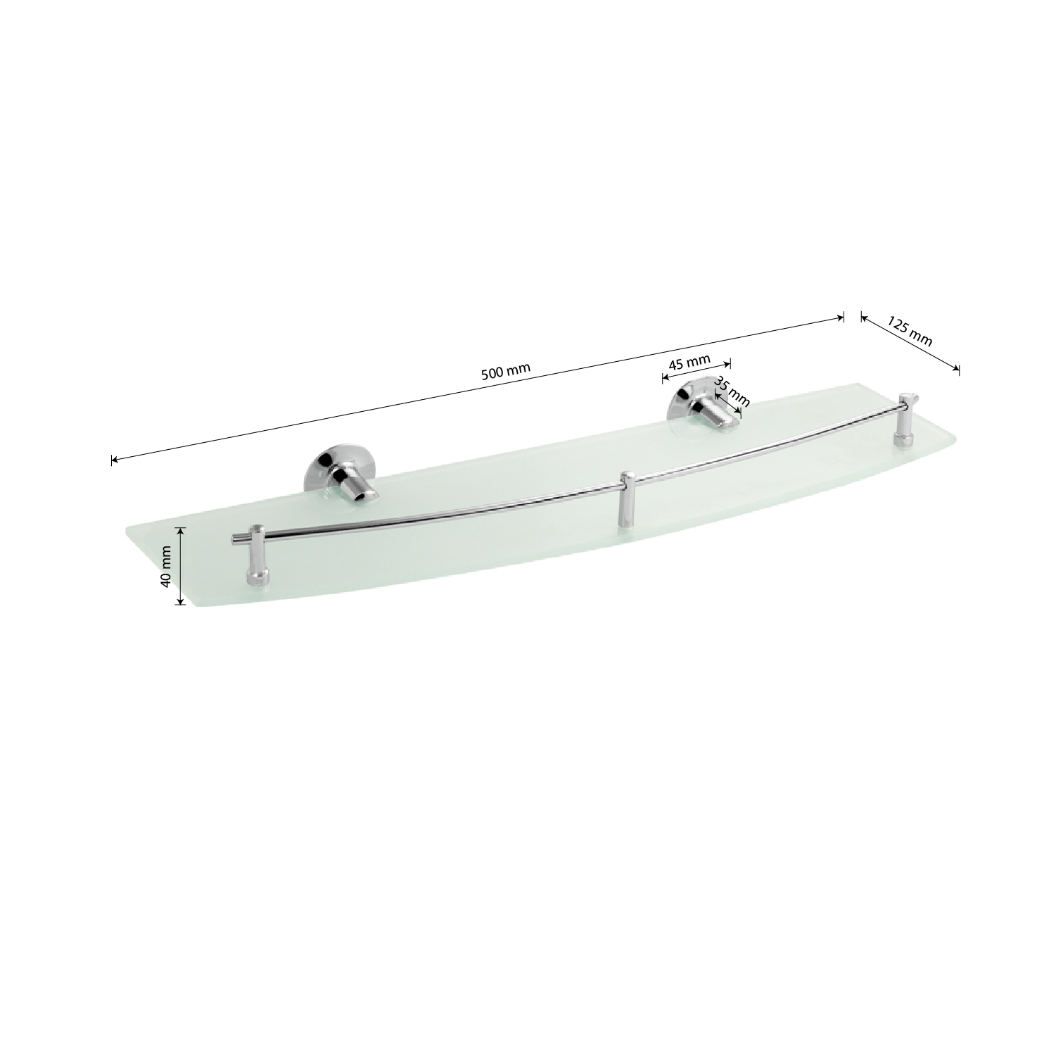Прямоугольная полка из матового стекла толщиной 5 мм с полированными краями о которые невозможно порезаться, с надежной фиксацией к стене с помощью крепления из металла с хромированным покрытием, идеально подходит для хранения различных ванных принадлежностей. Полочка изготовлена из качественного матового стекла и имеет бортик, предотвращающий падение ванных принадлежностей. Полка для ванной функциональное и практичное решение для любого интерьера. Хромированное покрытие креплений очень стойко переносит истирания и обеспечивает зеркальный блеск изделия. Идеально подойдет не только для ванной, но и для кухни. Изделие крепится к стене с помощью дюбелей и саморезов (входят в комплект). Габаритные размеры: ширина 500 мм, глубина 125 мм, высота 40 мм. Вес - 1,200 кг, объём - 0,00430 м3.