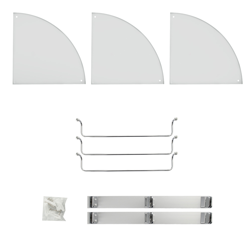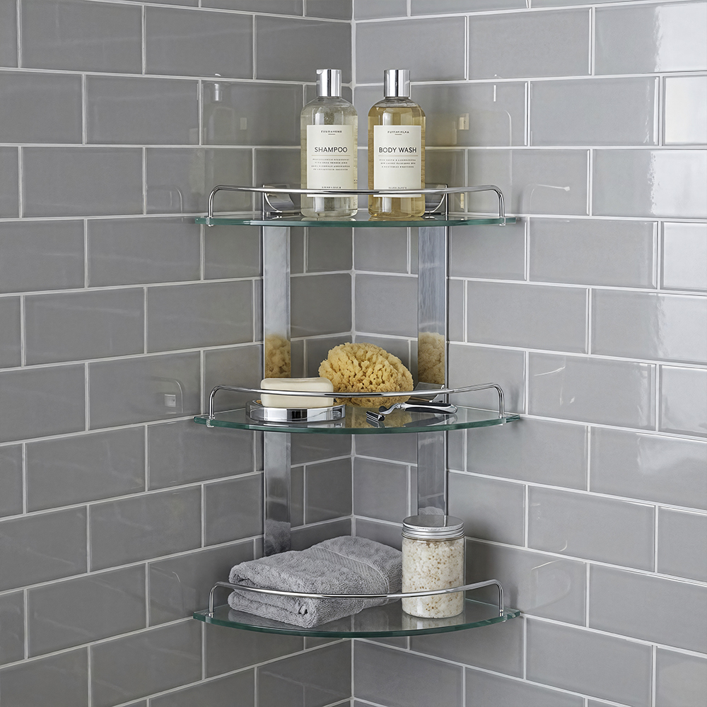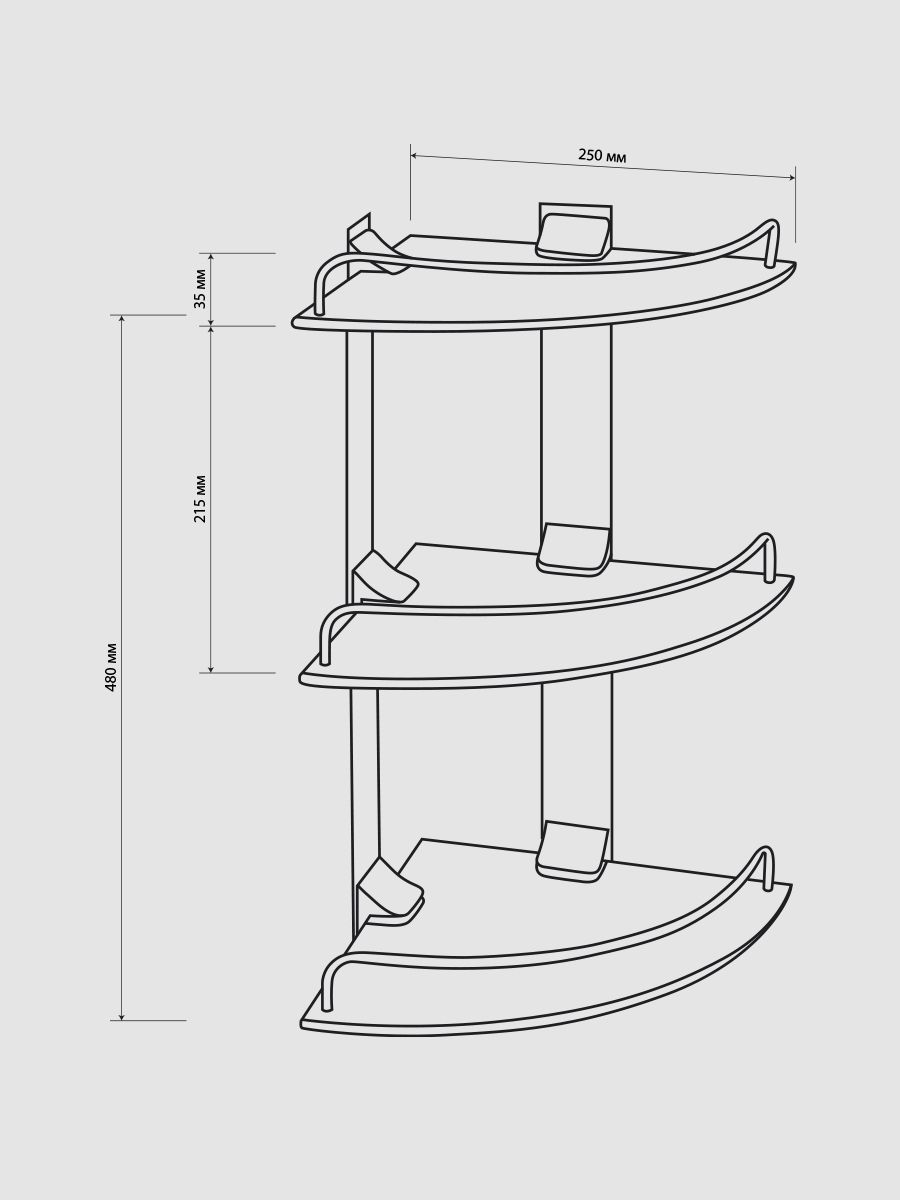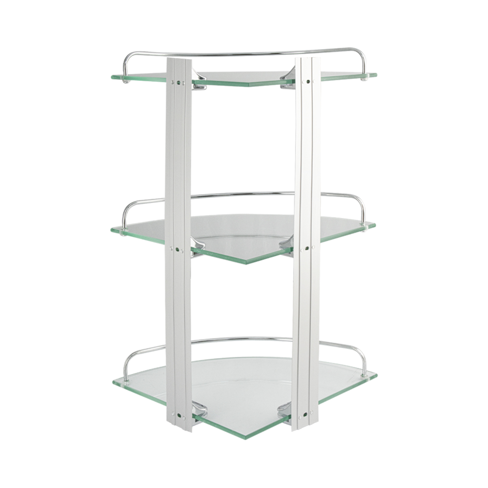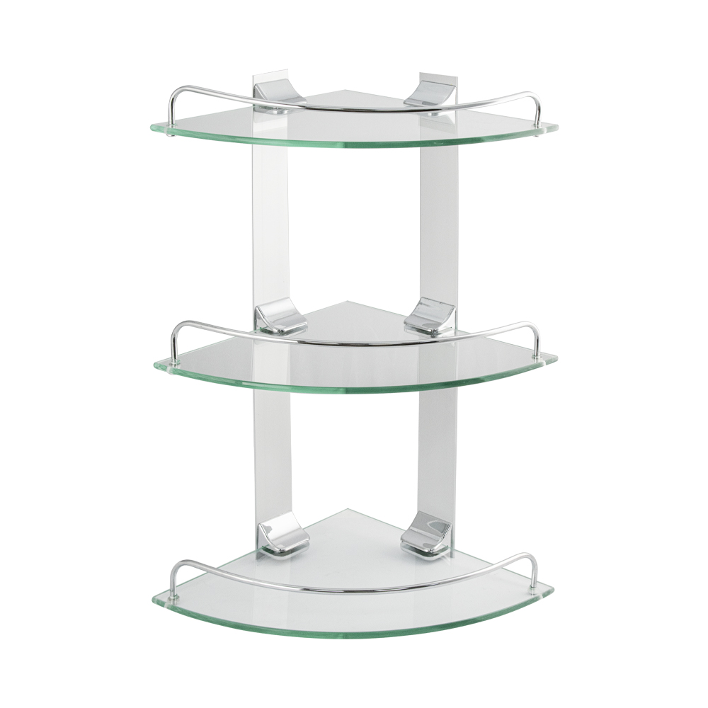 Подвесная трёхэтажная угловая полка для ванной из прочного стекла, толщиной 5 мм с полированными краями о которые невозможно порезаться, с надежной фиксацией к стене с помощью крепления из металла с хромированным покрытием, идеально подходит для хранения различных ванных принадлежностей. Полочка изготовлена из качественного стекла и имеет бортик, предотвращающий падение ванных принадлежностей. Полка для ванной функциональное и практичное решение для любого интерьера. Хромированное покрытие креплений очень стойко переносит истирания и обеспечивает зеркальный блеск изделия. Идеально подойдет не только для ванной, но и для кухни. Изделие крепится к стене с помощью дюбелей и саморезов (входят в комплект). Габаритные размеры: высота 480 мм, длина стороны 250 мм, ширина 320 мм, расстояние между полками 215 мм. Вес - 2,700 кг, объём - 0,00600 м3.