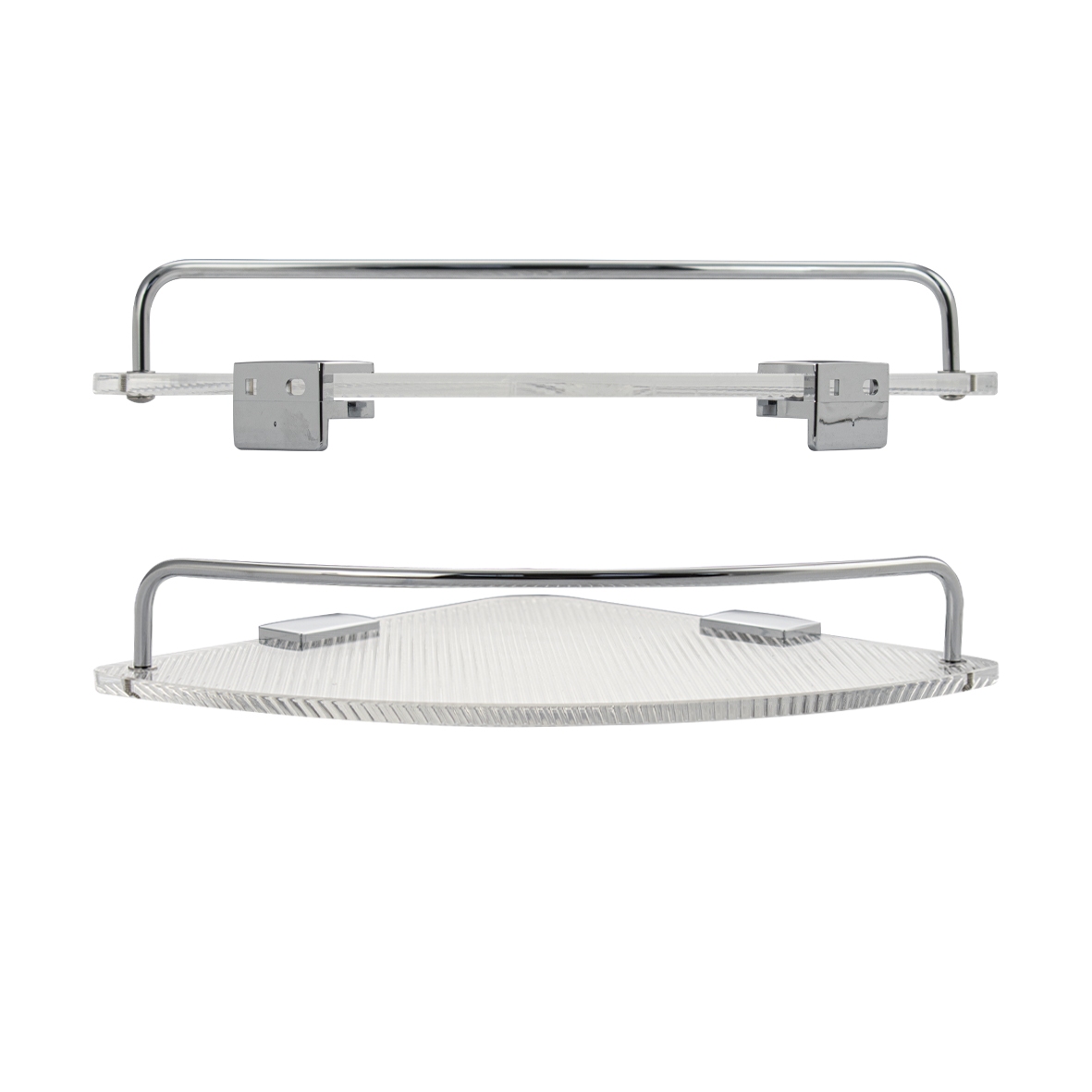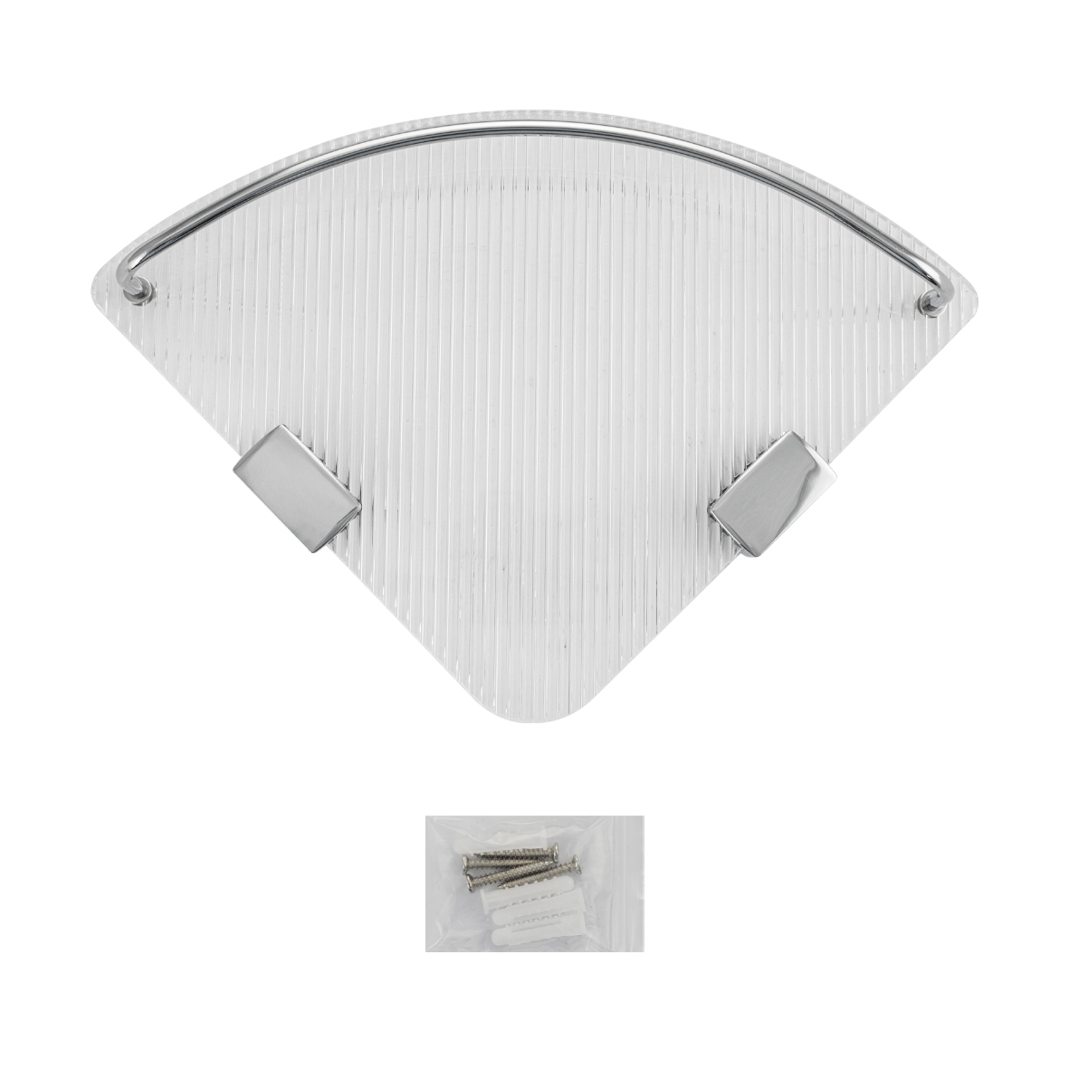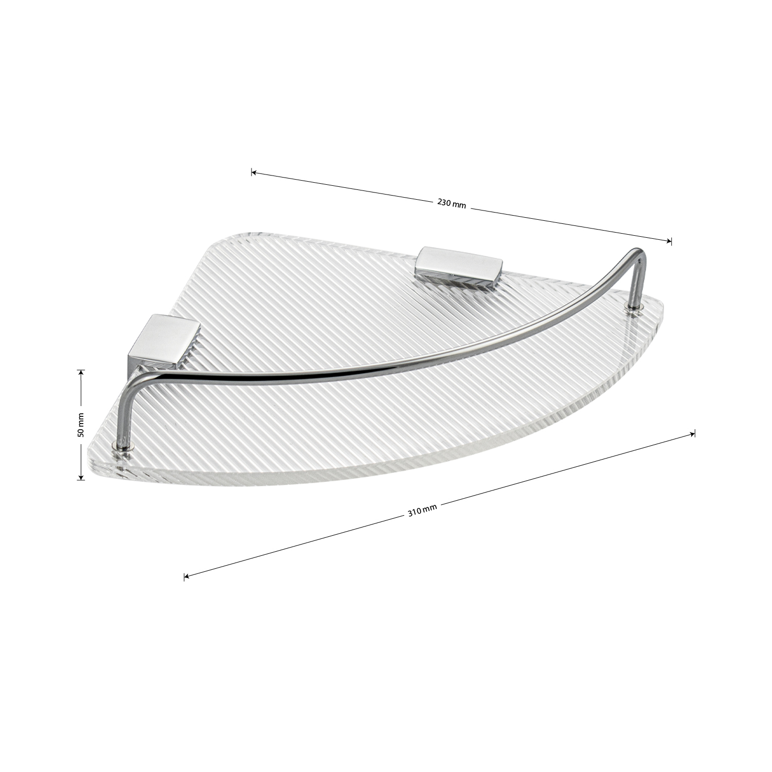 Подвесная однаэтажная угловая полка для ванной из прочного оргстекла с полированными краями о которые невозможно порезаться, с надежной фиксацией к стене с помощью крепления с хромированным покрытием, идеально подходит для хранения различных ванных принадлежностей. Полочка изготовлена из качественного оргстекла и имеет бортик, предотвращающий падение ванных принадлежностей. Полка для ванной функциональное и практичное решение для любого интерьера. Хромированное покрытие креплений очень стойко переносит истирания и обеспечивает зеркальный блеск изделия. Идеально подойдет не только для ванной, но и для кухни. Изделие крепится к стене с помощью дюбелей и саморезов (входят в комплект). Размеры: ширина 310 мм, длина стороны 230 мм, высота 50 мм. Вес - 0,600 кг, объём - 0,00395 м3