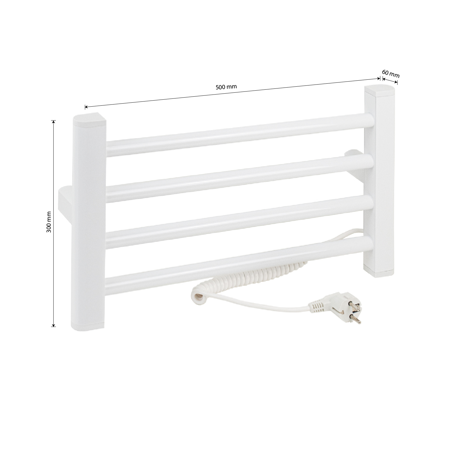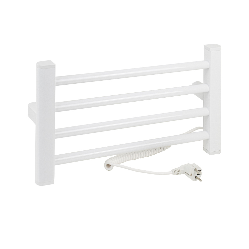 Полотенцесушитель электрический белый, лесенка, из алюминия, тэн из углеродного волокна гармонично впишется в современный интерьер и поможет поддержать комфортную атмосферу в ванной комнате, работает вне зависимости от отопительного сезона, и его можно разместить в любом месте ванной или даже на стене в комнате. Сверху нанесено белое полимерное покрытие, устойчивое к высоким температурам. Благодаря продуманному расположению труб можно размещать объемный текстиль, сократив время просушки. Установка и ремонт не требуют работы сантехников. Запуск - нажатием одной кнопки. Габаритные размеры: высота 300 мм, ширина 500 мм, глубина 90 мм. 4 перекладины, с сухим ТЭНом, 95 W, 220-240 V, 50-60 Гц, t - 55°С, IP 44. Комплект: полотенцесушитель, крепёж, провод с евровилкой для подключения. Вес - 2,000 кг, объём - 0,01800 м3.