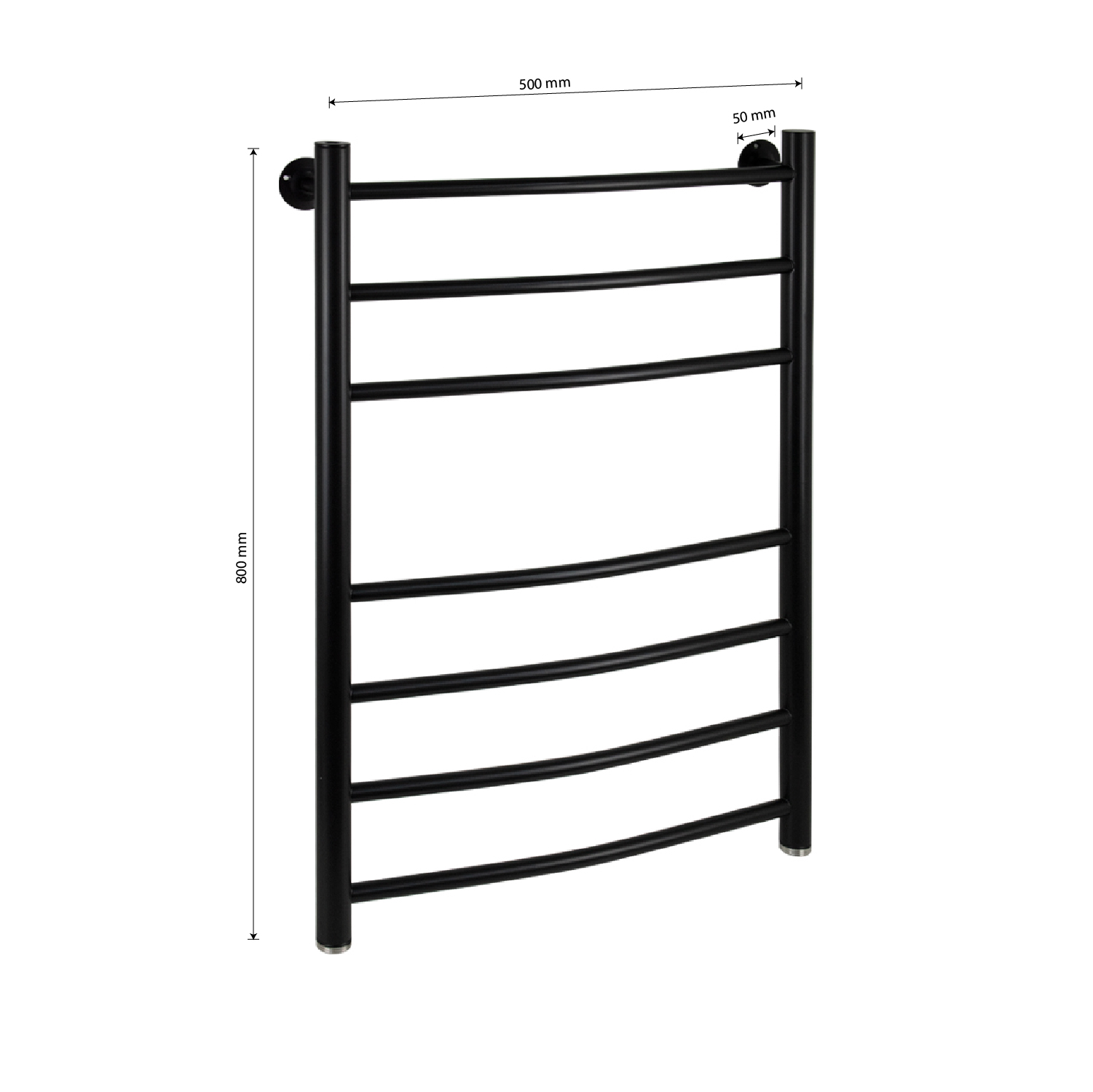 Водяной полотенцесушитель, чёрный, лесенка - дуга, изготовлен из высокопрочной нержавеющей стали. Металл устойчив к коррозии и деформации, отлично выдерживает перепады температуры и давления в системе водоснабжения. После установки полотенцесушителя в помещении становится значительно комфортнее: уменьшается влажность, исчезает конденсат, снижается риск появления плесени. Изделие не только поддержит комфортную температуру в санузле, но и быстро просушит белье. Подключение 1". Подключается к системе горячего водоснабжения, функционирует круглый год. Габаритные размеры: высота 800 мм, ширина 500 мм, диаметр трубы 32 мм, толщина 2 мм. Комплект: полотенцесушитель, 2 крепление, кран Маевского поможет удалить воздух из системы, декоративные заглушки. Вес - 4,600 кг, объём - 0,04000 м3.