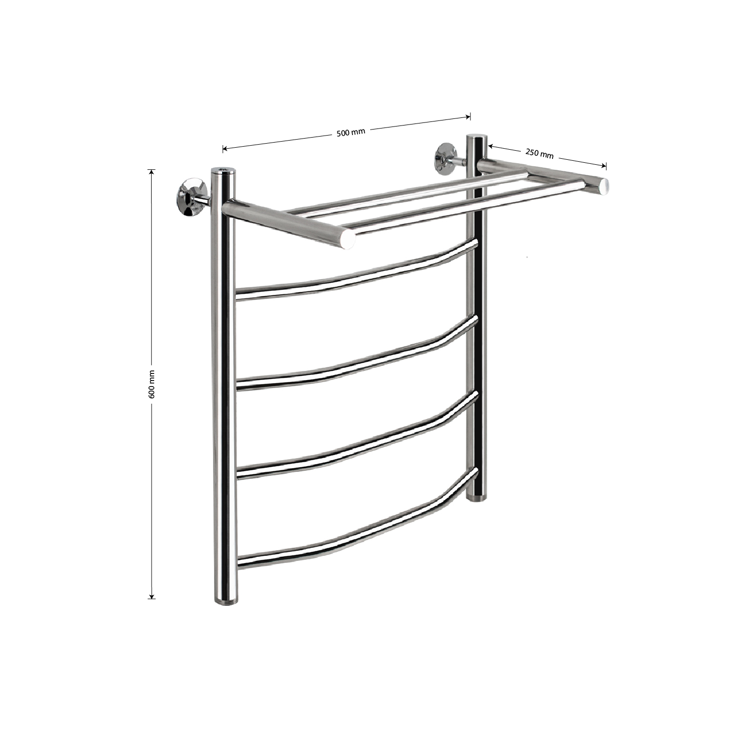 Водяной полотенцесушитель, хромированный, лесенка - трапеция с полкой, изготовлен из высокопрочной нержавеющей стали. Металл устойчив к коррозии и деформации, отлично выдерживает перепады температуры и давления в системе водоснабжения. После установки полотенцесушителя в помещении становится значительно комфортнее: уменьшается влажность, исчезает конденсат, снижается риск появления плесени. Изделие не только поддержит комфортную температуру в санузле, но и быстро просушит белье. Подключение 1". Подключается к системе горячего водоснабжения, функционирует круглый год. Габаритные размеры: высота 600 мм, ширина 500 мм, полка 220 мм, диаметр трубы 32 мм, толщина 2 мм. Комплект: полотенцесушитель, 4 крепления, кран Маевского поможет удалить воздух из системы, декоративные заглушки. Вес - 5,100 кг, объём - 0,05643 м3.