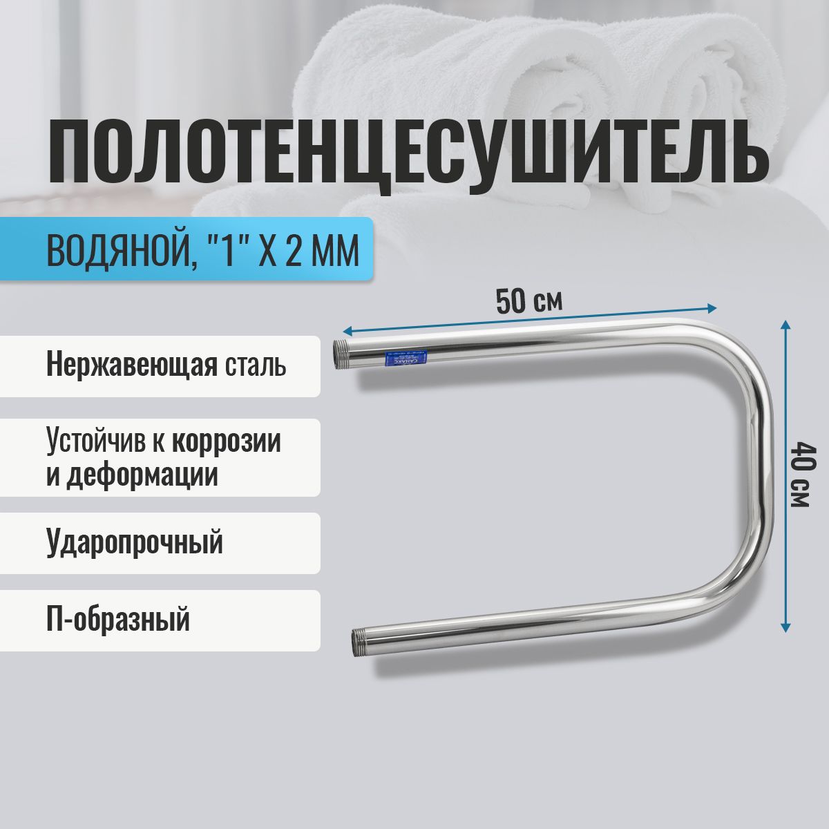 Водяной полотенцесушитель, хромированный, П-образный, изготовлен из ударопрочной нержавеющей стали. Металл устойчив к коррозии и деформации, отлично выдерживает перепады температуры и давления в системе водоснабжения. После установки полотенцесушителя в помещении становится значительно комфортнее: уменьшается влажность, исчезает конденсат, снижается риск появления плесени. Изделие не только поддержит комфортную температуру в санузле, но и быстро просушит белье. Подключение 1". Подключается к системе горячего водоснабжения, функционирует круглый год. Габаритные размеры: высота 400 мм, ширина 500 мм, диаметр трубы 32 мм. Вес - 1,800 кг, объём - 0,01100 м3.