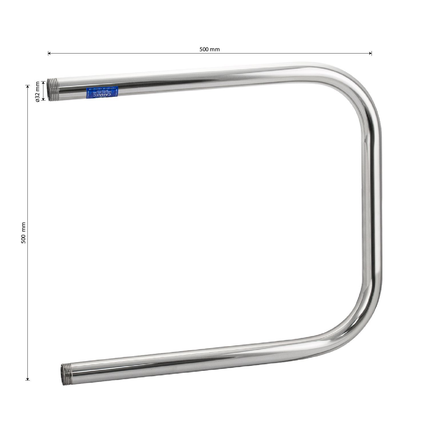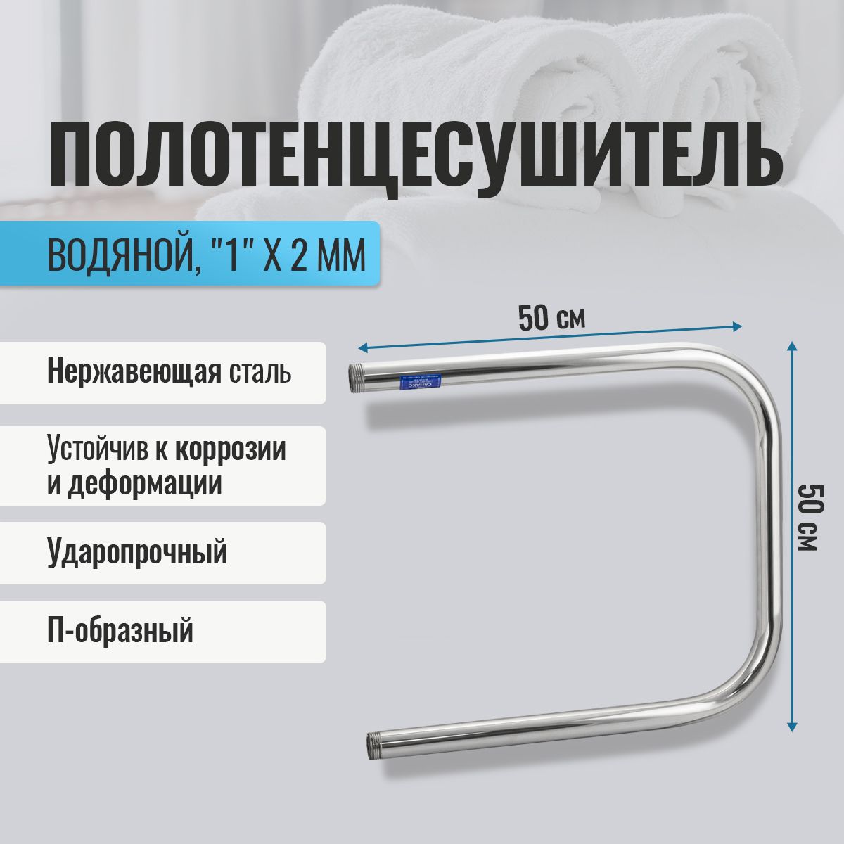 Водяной полотенцесушитель, хромированный, П-образный, изготовлен из ударопрочной нержавеющей стали. Металл устойчив к коррозии и деформации, отлично выдерживает перепады температуры и давления в системе водоснабжения. После установки полотенцесушителя в помещении становится значительно комфортнее: уменьшается влажность, исчезает конденсат, снижается риск появления плесени. Изделие не только поддержит комфортную температуру в санузле, но и быстро просушит белье. Подключение 1". Подключается к системе горячего водоснабжения, функционирует круглый год. Габаритные размеры: высота 500 мм, ширина 500 мм, диаметр трубы 32 мм. Вес - 1,700 кг, объём - 0,01080 м3.