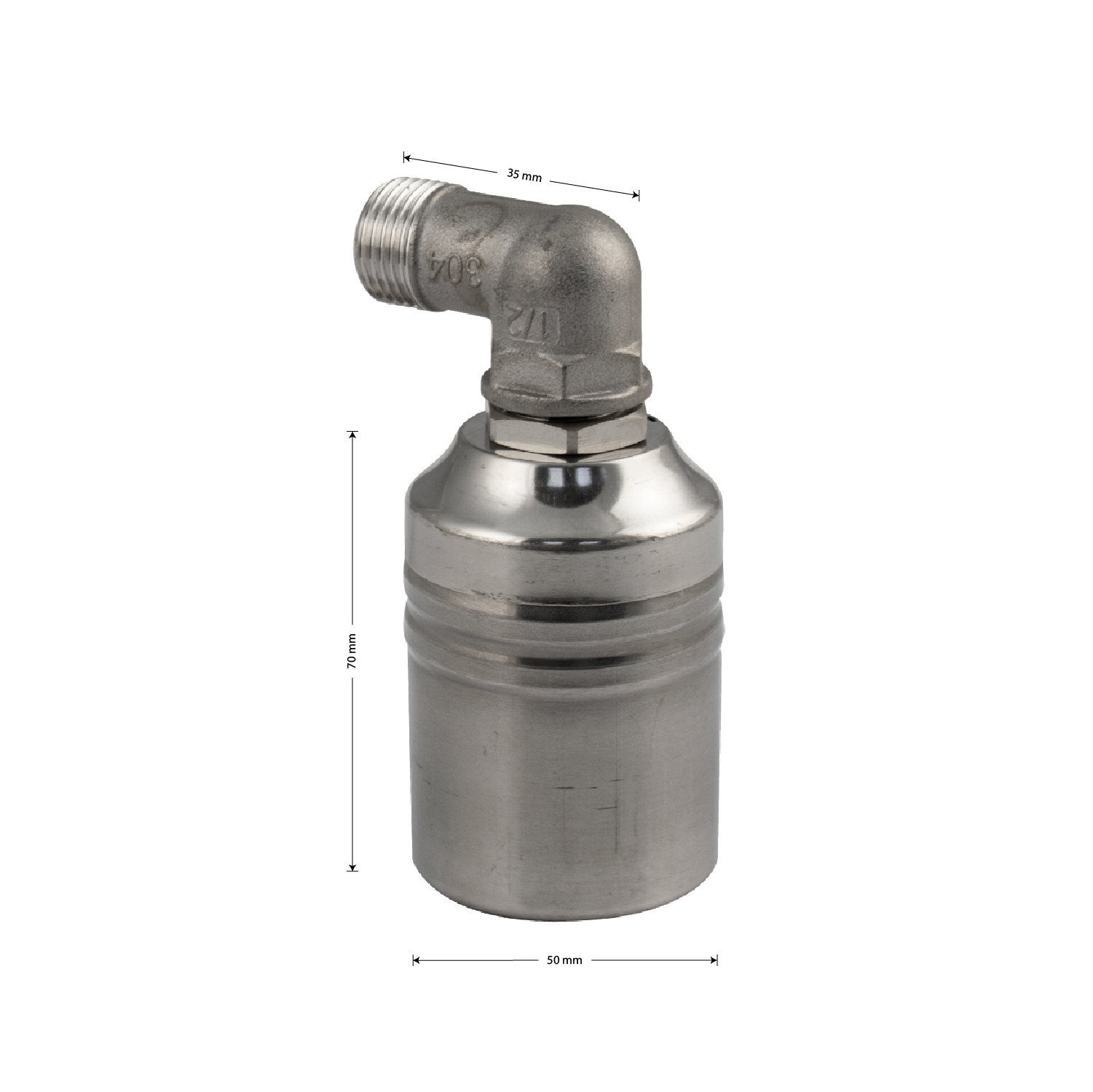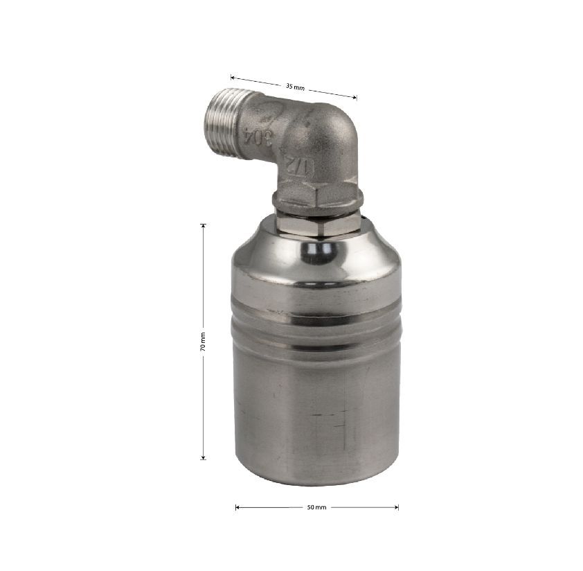 Клапан поплавковый предназначен для регулирования уровня воды в накопительной емкости, баке, резервуаре, представляет собой поплавковый клапан с запорным механизмом. Основное предназначение поплавкового клапана – контроль наполнения резервуарной емкости водой. Его применение актуально для водопроводных систем, где существует довольно низкая производительность, а также в тех местах, где часто бывают перебои подачи воды. Клапан, встроенный в накопительную емкость, автоматически перекрывает вход для воды, при достижении необходимого уровня. Запорный механизм приводится в действие заполняемой водой, это позволяет повышать силу закрытия клапана вместе с уровнем воды в емкости. Максимальный расход, м3/ч: 3,3. Материал корпуса: нержавеющая сталь . Габаритные размеры: высота 70 мм, диаметр 50 мм, присоединения: 1/2 ". Максимальное рабочее давление, бар: 5. Максимальная рабочая температура 80°С. Вес - 0,16 кг, объём - 0,00055 м3.