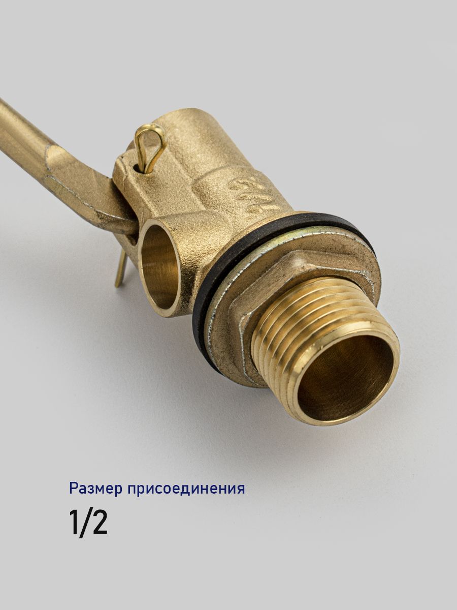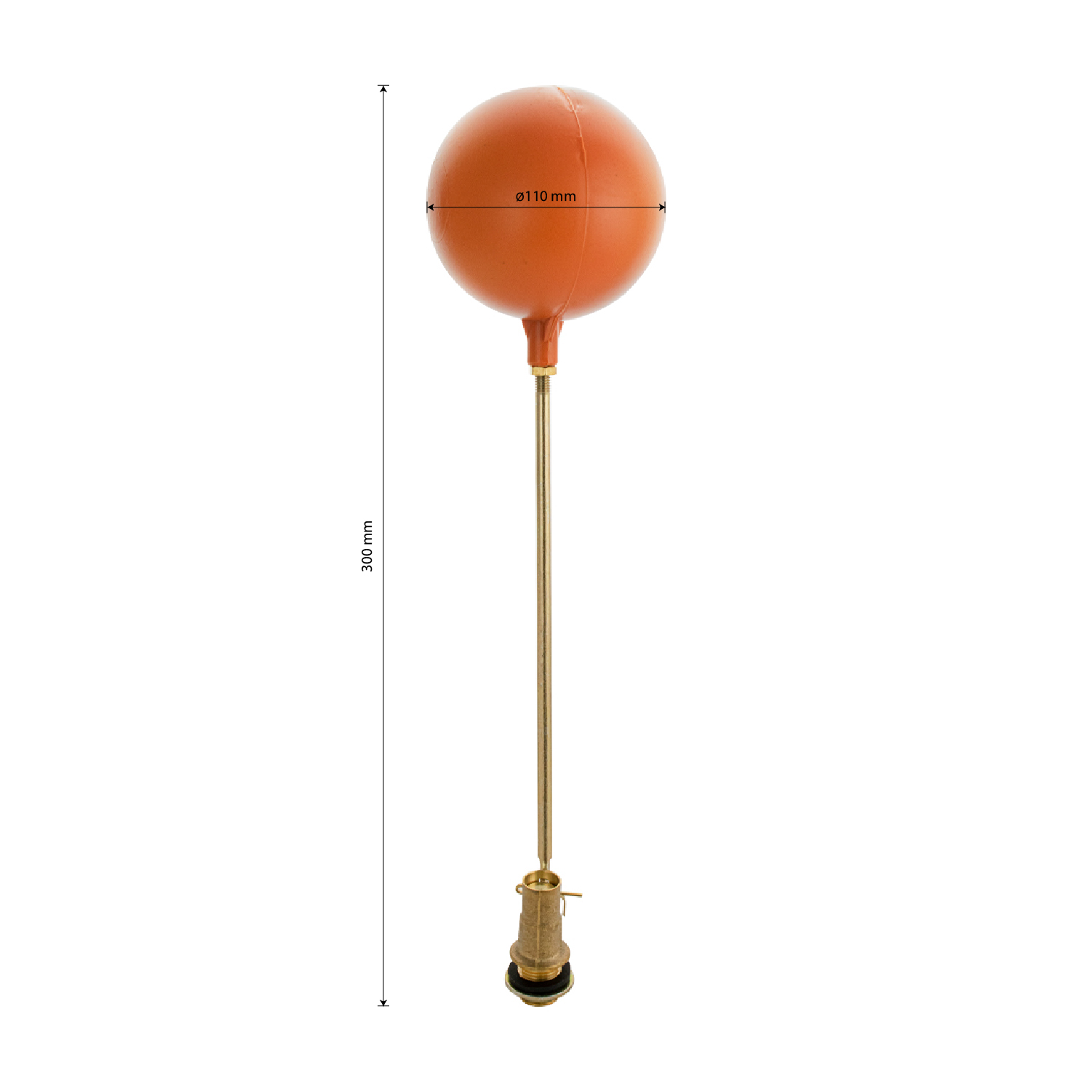 Клапан поплавковый предназначен для регулирования уровня воды в накопительной емкости, баке, резервуаре, представляет собой поплавковый клапан с запорным механизмом. Основное предназначение поплавкового клапана – контроль наполнения резервуарной емкости водой. Его применение актуально для водопроводных систем, где существует довольно низкая производительность, а также в тех местах, где часто бывают перебои подачи воды. Клапан, встроенный в накопительную емкость, автоматически перекрывает вход для воды, при достижении необходимого уровня. Запорный механизм приводится в действие полым пластиковым поплавком посредством рычага - это позволяет повышать силу закрытия клапана вместе с уровнем воды в емкости. Максимальный расход, м3/ч: 3,3. Материал корпуса: Латунь. Размер присоединения: 1/2 ", шар - d - 110 мм. Максимальное рабочее давление, бар: 5. Максимальная рабочая температура 80°С. Вес - 0,200 кг, объём - 0,00265 м3.