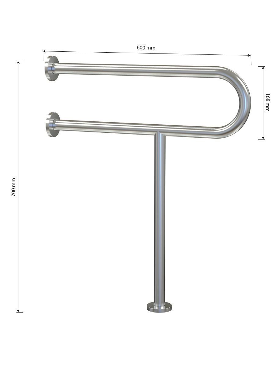 Поручень для инвалидов к унитазу с опорой в пол, хромированный. Изделие представляет собой эргономичное опорное устройство, предназначенное для установки к унитазу. Выполнено из высококачественной нержавеющей стали с хромированным покрытием, что обеспечивает защиту от коррозии и продолжительный эксплуатационный период. Поручень выполнен из цельной трубы, не имеет видимых швов и соединений и является полностью травмобезопасным. Конструкция поручня имеет форму и ширину, удобную для захвата кистью руки, является травмобезопасной не имеет стыков на поверхности и острых углов. Габаритные размеры: расстояние между двумя параллельными поручнями 168 мм, диаметр трубы 32 мм. Вес - 2,300 кг , объём - 0,01669 м3.