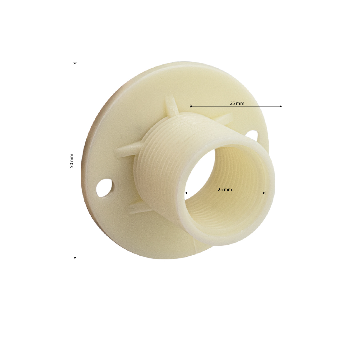 Крепление смесителей к витрине, на 3/4, пластиковое. Размеры: ширина 25, диаметр посадочного седла 50 мм. Вес - 0,050 кг, объем - 0,00007 м3.