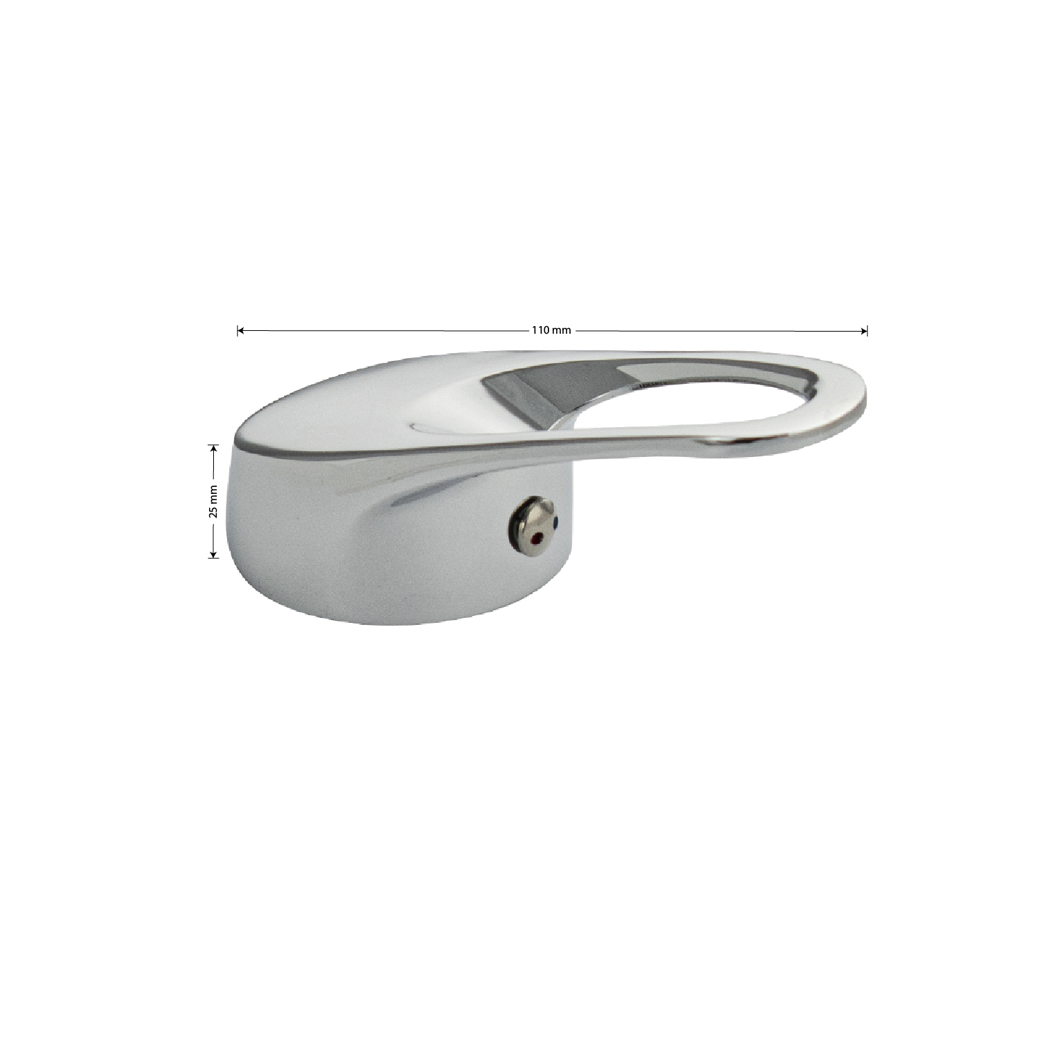 Ручка шарового смесителя, для корпуса 40 мм, металлическая, с прорезью. Габаритные размеры: высота 25 мм, ширина 110 мм. Вес - 0,09 кг, объем - 0,00022 м3.