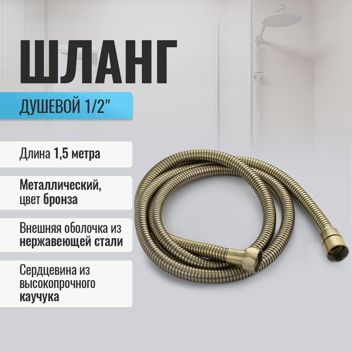 Универсальный гибкий душевой шланг, цвет бронза, внешняя оболочка из нержавеющей стали, сочетает в себе отличные эксплуатационные характеристики и приятный дизайн. Сердцевина из высокопрочного каучука защищает изделие от изломов. Достоинства этого устройства — в его особой структуре: трубка не выпадет из лейки благодаря прочному крепежу. Прочный и надежный шланг, прост в монтаже, удобен в использовании, подключение имп/имп-конус. Выходы шлага: 1/2. Тип соединения оплетки: двойной замок. Длина шланга 150 см. Вес - 0,300 кг, объём - 0,00120 м3.