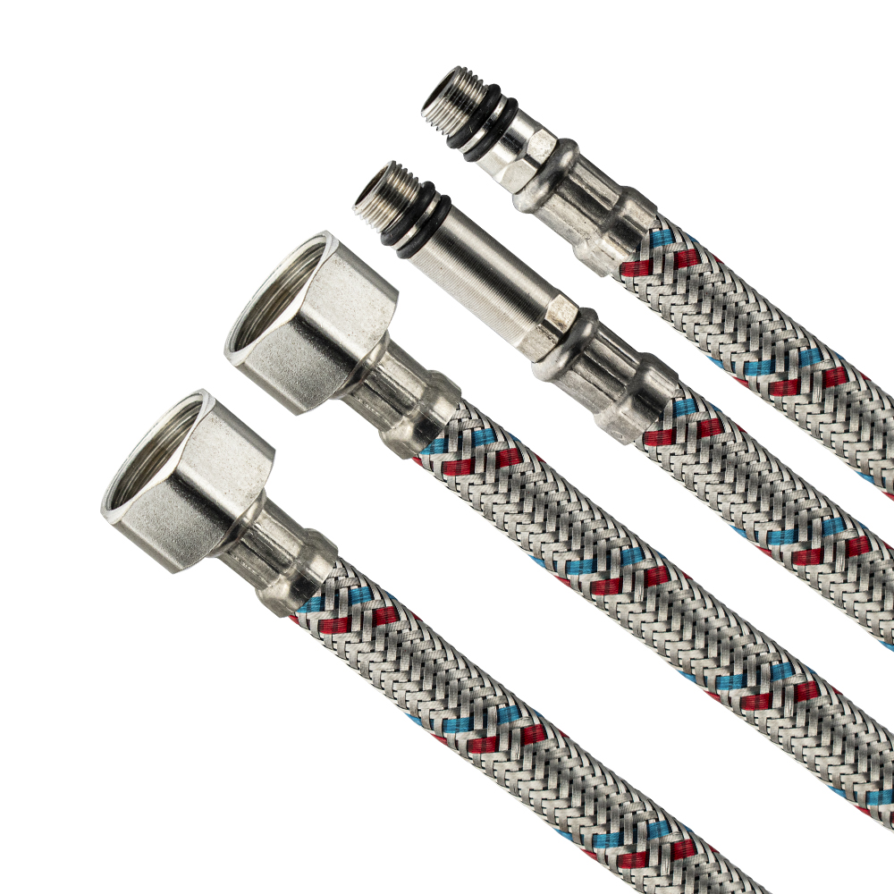Гибкая подводка для смесителя, пара, гайка - штуцер, 1/2", 50 cм, с внутренней резьбой предназначена для присоединения к трубопроводам сантехнической арматуры и приборов сантехнического назначения (смесителей, душевых кабин, биде, умывальников, унитазов) и подводки воды к агрегатам бытового назначения (водонагревательным приборам, стиральным и посудомоечным машинам, насосам и тд). Оплетка гибкой подводки сплетена из 7 нитей из нержавеющей стали толщиной 0,2 мм. Материал оплетки нержавеющяя сталь. Внутренний шланг (трубка) изготовлен из специальной нетоксичной резины. Внутренний диаметр шланга – 8,5 мм ± 0,5 мм. Наружный диаметр шланга – 12,5 мм ± 0,5 мм. При установке гибкой подводки концевую арматуру необходимо затягивать с усилием не более 4 Нм. Вес - 0,17 кг, объём - 0,00030 м3.
