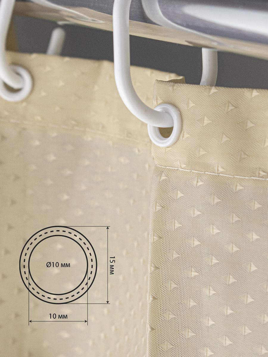 Штора в ванную комнату двойная, однотонная БЕЖЕВАЯ 120см х 180см х 2 штуки, полиэстэр
