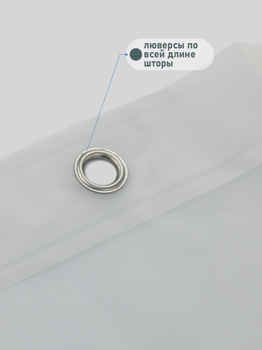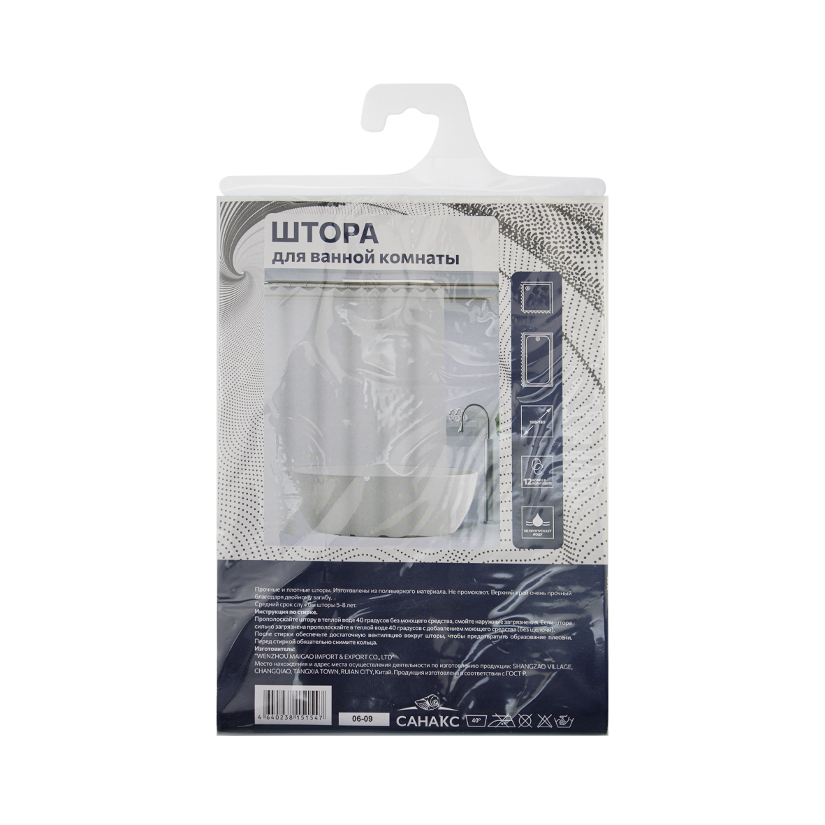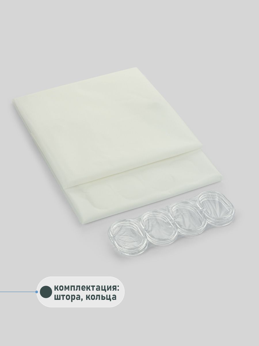 Штора для ванны белая,матовая. Штора подойдет для любого интерьера ванной комнаты, она полупрозрачная и зрительно увеличивает пространство, делает помещение светлым, а мебель и зеркало защищает от брызг. Шторка легкая, но достаточно плотная, водоотталкивающая, имеет стандартные размеры 180 х180 сантиметров. Верхний край шторы уплотнен, для более надежного крепления на кольца, отверстия для колец обрамлены металлическими люверсами из нержавеющей стали. В комплекте прочные пластиковые кольца в количестве 12 штук для крепления к штанге. Изготовлена из современного экологичного материала PEVA, который имеет ряд преимуществ перед другими материалами. В отличии от тканевой она абсолютно водонепроницаема и может не сразу приклеиться к ванне, чтобы улучшить прилипание, полейте бортик ванной водой из душевой лейки. В отличие от шторы из ПВХ, не имеет в составе вредных примесей, токсинов и хлора, гипоаллергенна и без запаха, материал, устойчивый к образованию грибка и плесени. Упакована в прочный пакет. Вес 0,37 кг, об