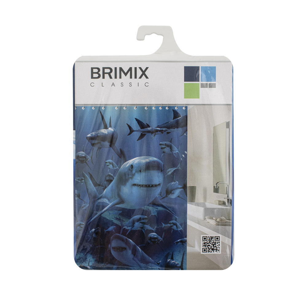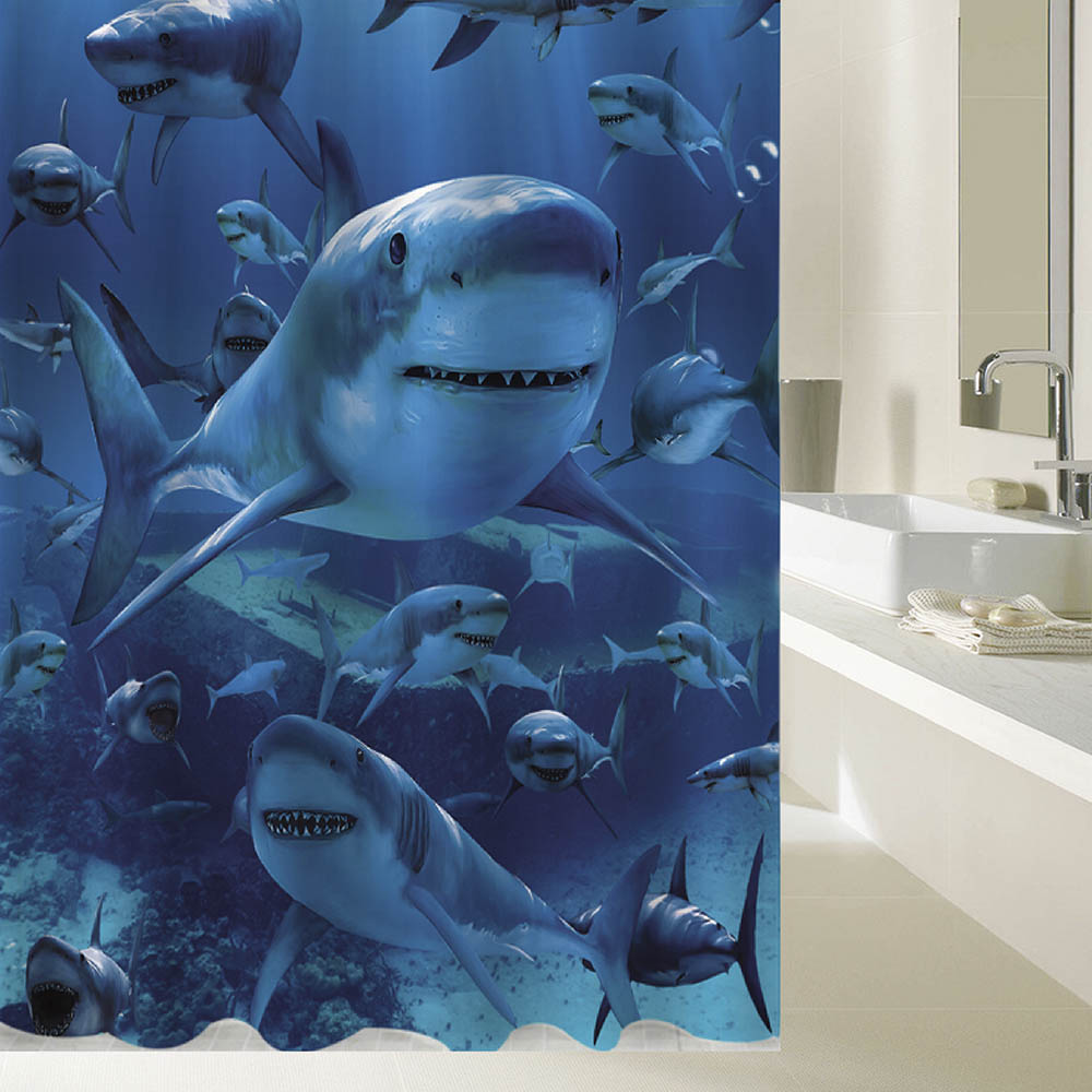 Шторка в ванную комнату, фотопечать, АКУЛА