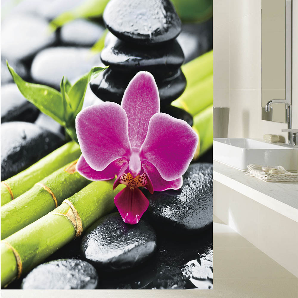 Шторка в ванную комнату, фотопечать, БАМБУК с ЦВЕТКОМ