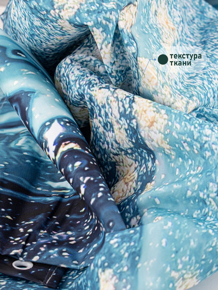 Красиво декорированная шторка в ванную и душевую комнаты с рисунком, защищающая пол и оборудование ванной комнаты от брызг воды, изготовлена из полиэстера и обладает выраженными водоотталкивающими свойствами. Занавеска для ванной имеет в верхней части 12 отверстей обработанных на оверлоке. Декоративный рисунок нанесен на поверхность ткани при помощи фотопечати. Такие принты не боятся влаги и не смываются даже очень горячей водой. Водоотталкивающие шторы для ванной, пошитые из ткани плотностью 80 г/м2, не придется дополнительно утяжелять - они расправятся под своим весом и не будут липнуть к телу принимающего душ человека. При заказе данных изделий следует учесть, что яркость и оттенок рисунка на ткани могут несколько отличаться от изображения на экране монитора, а также допустимо отклонение в размерах полотна в пределах 5 см. Габаритные размеры: ширина 180 см, высота 180 см. Вес - 0,450 кг, объём - 0,00166 м3.
