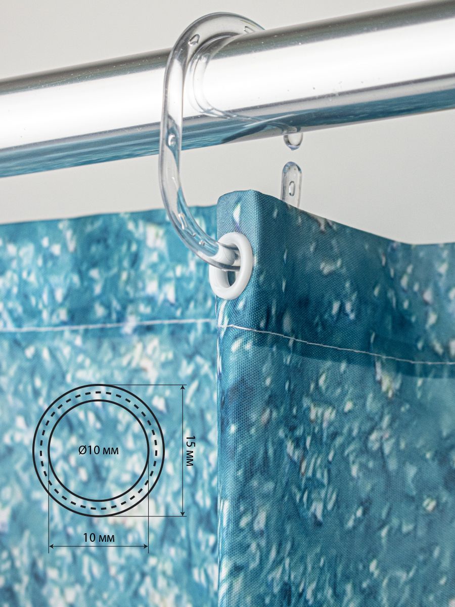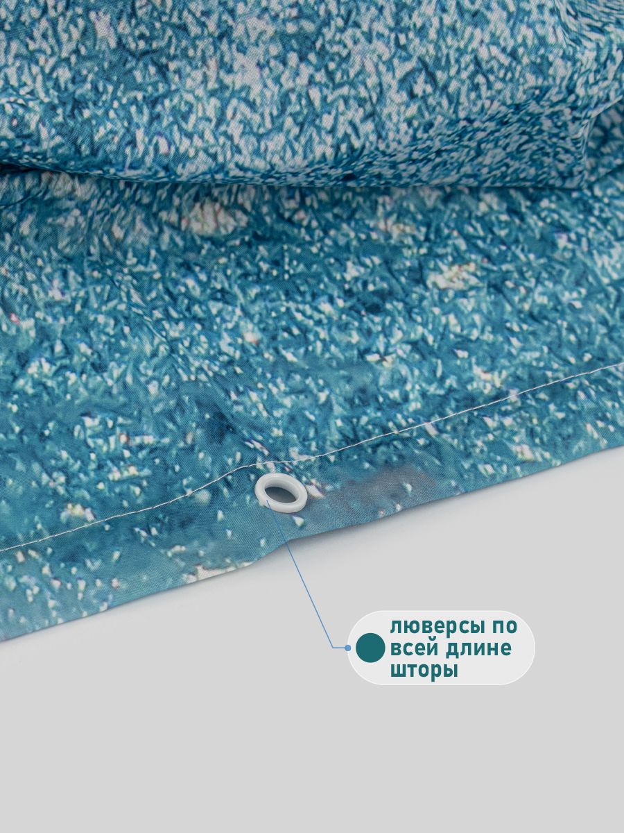 Штора с рисунком, БИРЮЗОВЫЙ МРАМОР, в ванную комнату, без колец, полиэстэр
