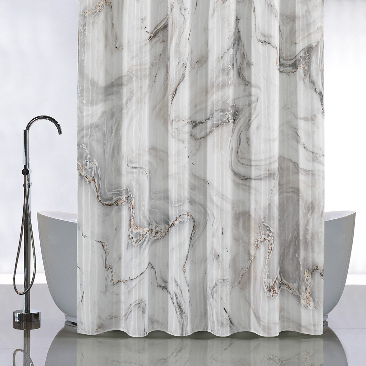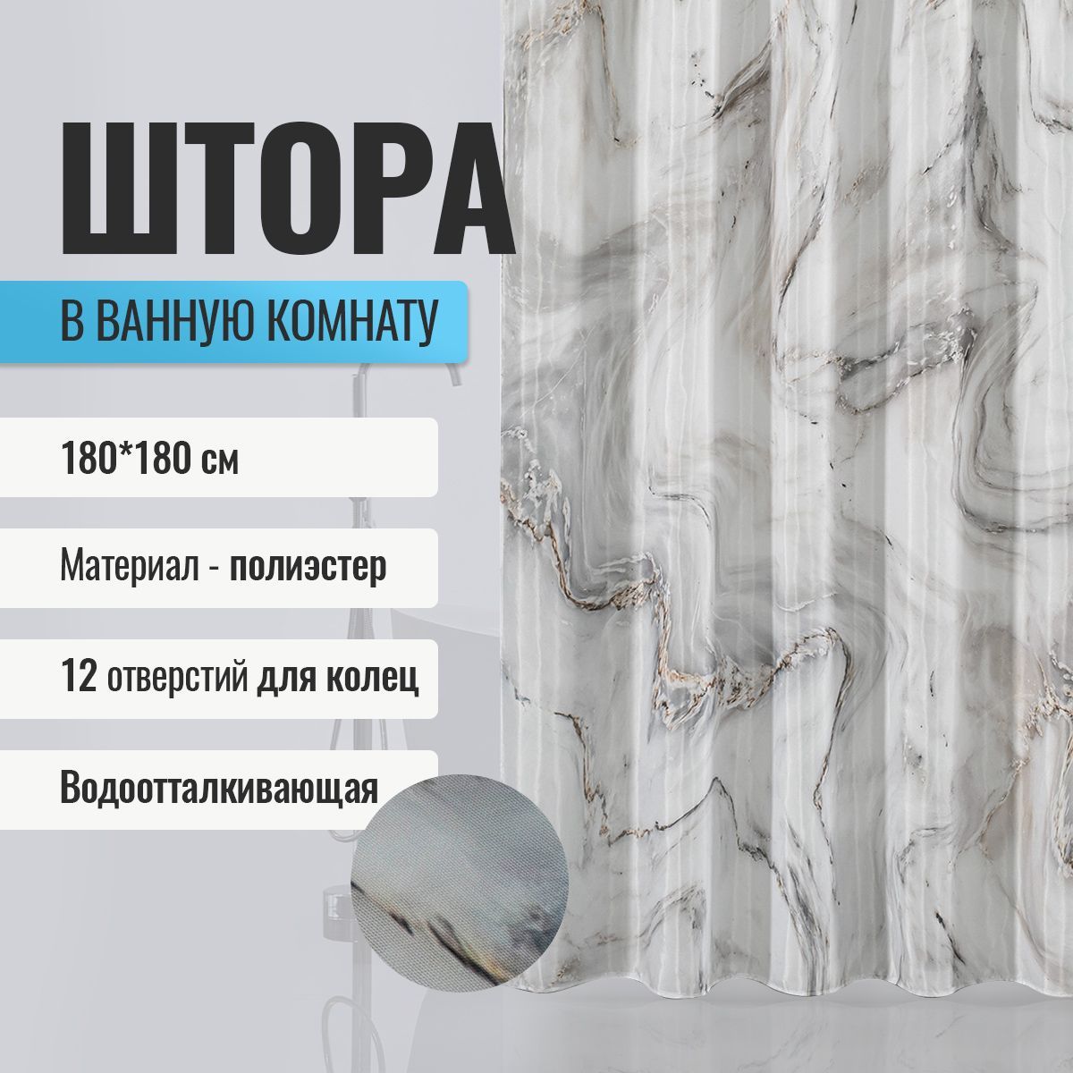 Красиво декорированная шторка в ванную и душевую комнаты с рисунком, защищающая пол и оборудование ванной комнаты от брызг воды, изготовлена из полиэстера и обладает выраженными водоотталкивающими свойствами. Занавеска для ванной имеет в верхней части 12 отверстей обработанных на оверлоке. Декоративный рисунок нанесен на поверхность ткани при помощи фотопечати. Такие принты не боятся влаги и не смываются даже очень горячей водой. Водоотталкивающие шторы для ванной, пошитые из ткани плотностью 80 г/м2, не придется дополнительно утяжелять - они расправятся под своим весом и не будут липнуть к телу принимающего душ человека. При заказе данных изделий следует учесть, что яркость и оттенок рисунка на ткани могут несколько отличаться от изображения на экране монитора, а также допустимо отклонение в размерах полотна в пределах 5 см. Габаритные размеры: ширина 180 см, высота 180 см. Вес - 0,450 кг, объём - 0,00166 м3.