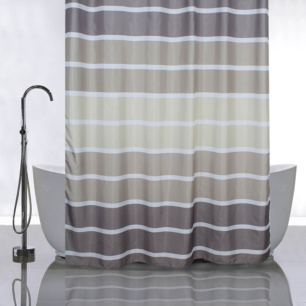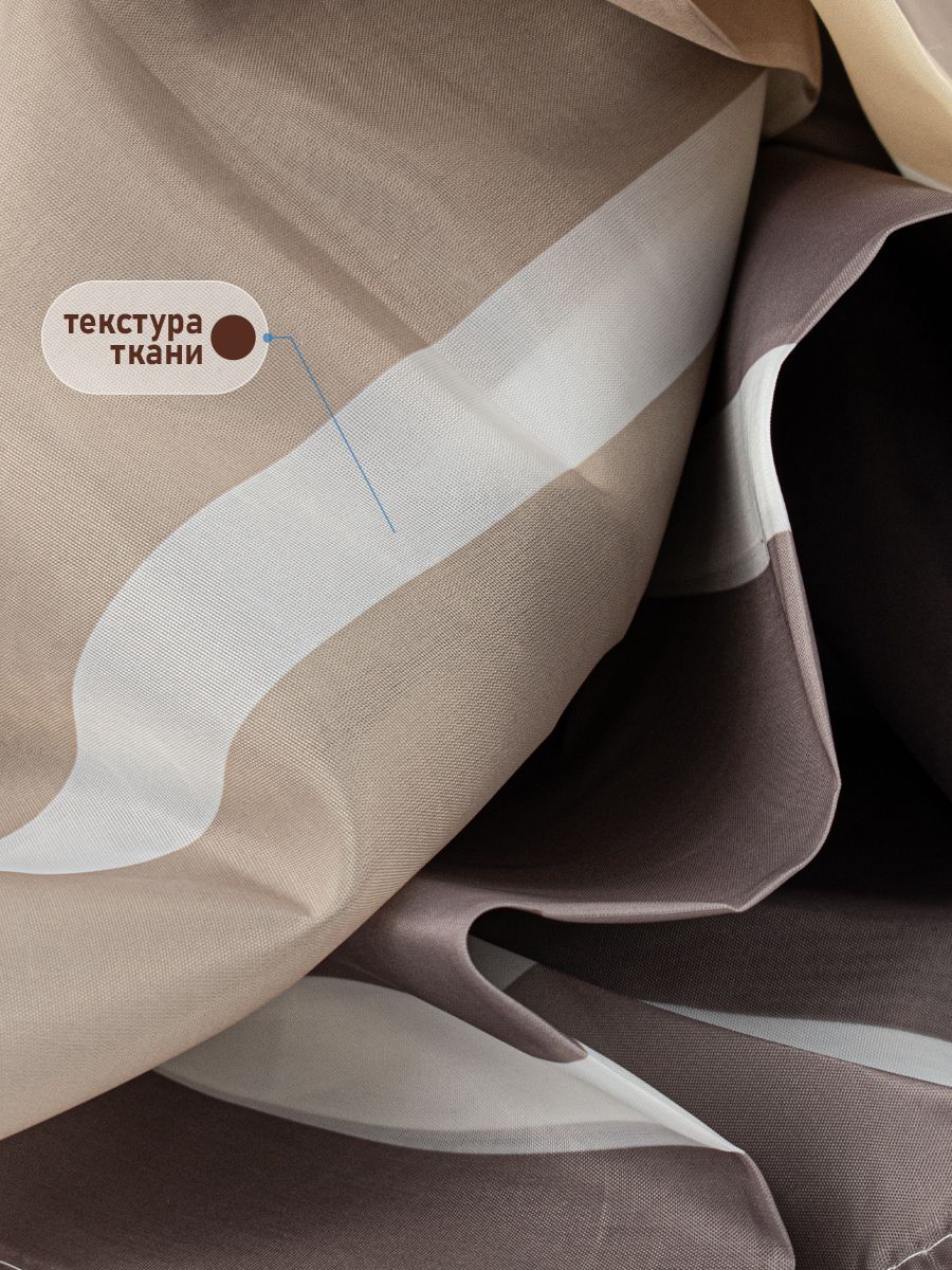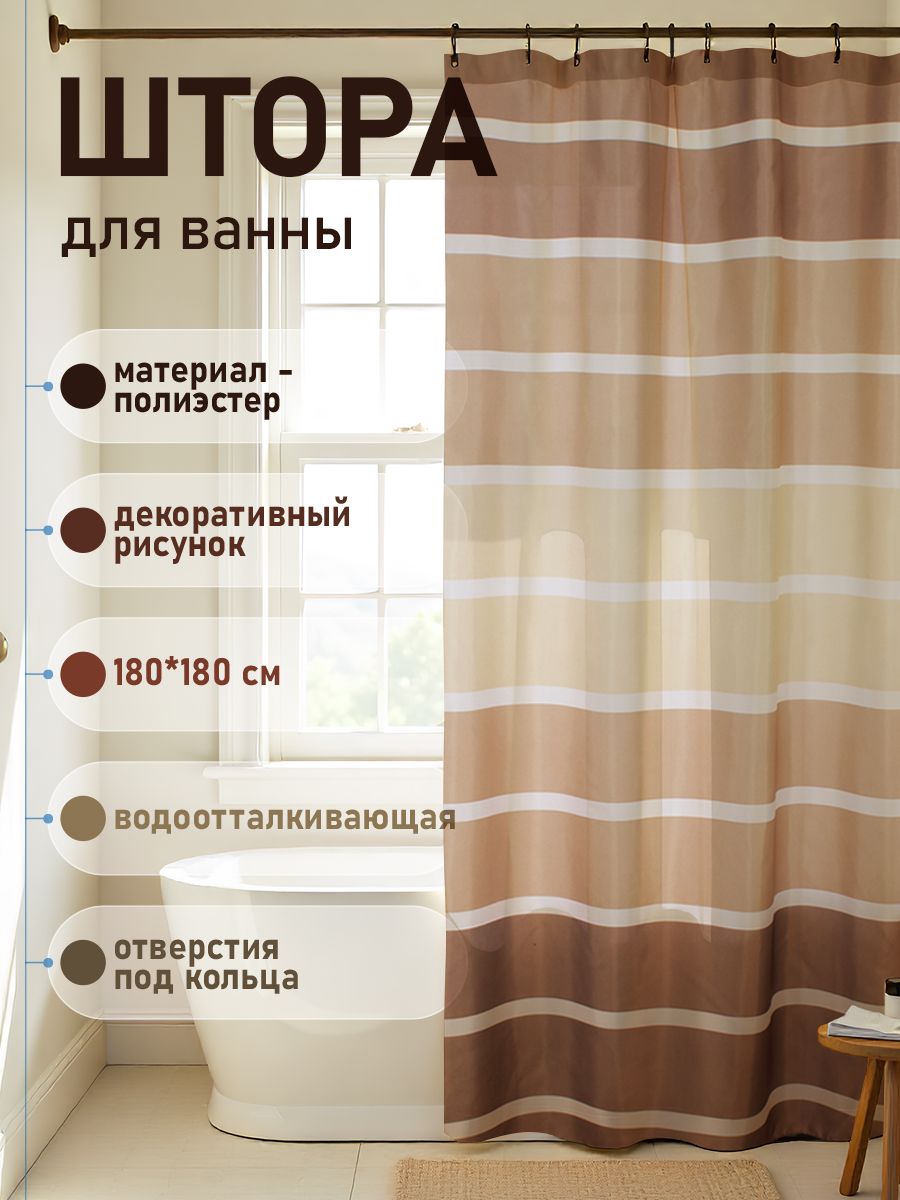 Штора с рисунком, ГОРИЗОНТАЛЬНЫЕ КОРИЧНЕВЫЕ ПОЛОСКИ, в ванную комнату, без колец, полиэстэр