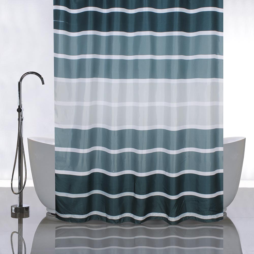 Штора с рисунком, ГОРИЗОНТАЛЬНЫЕ ЗЕЛЁНЫЕ ПОЛОСКИ, в ванную комнату, без колец, полиэстэр