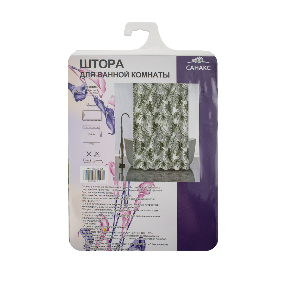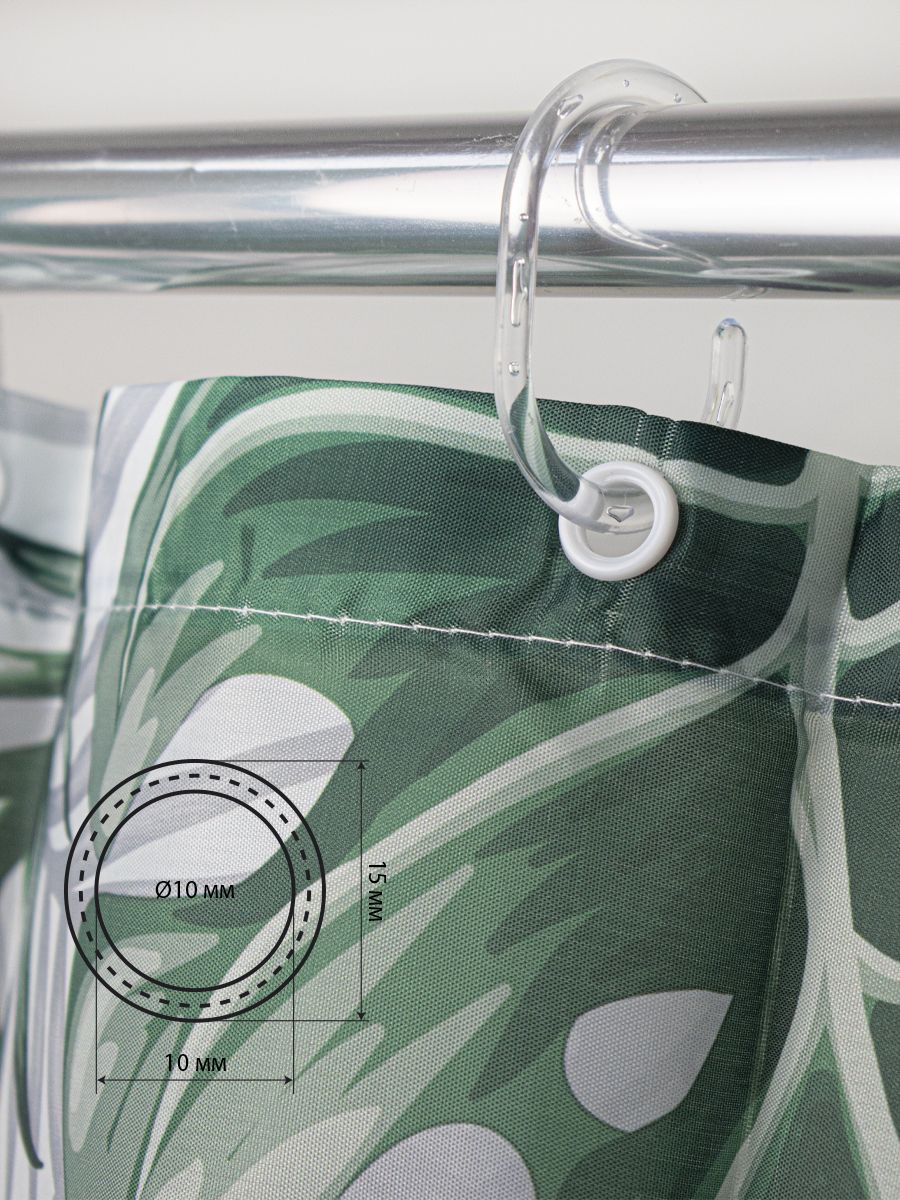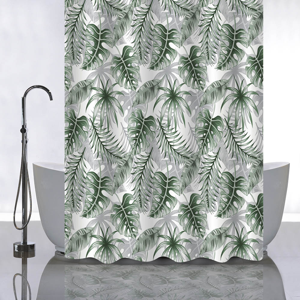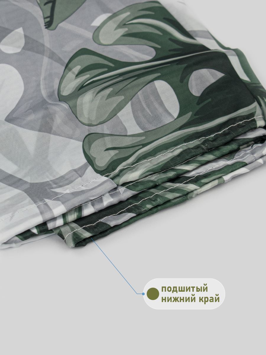 Штора с рисунком, МОНСТЕРА, в ванную комнату, без колец, полиэстэр